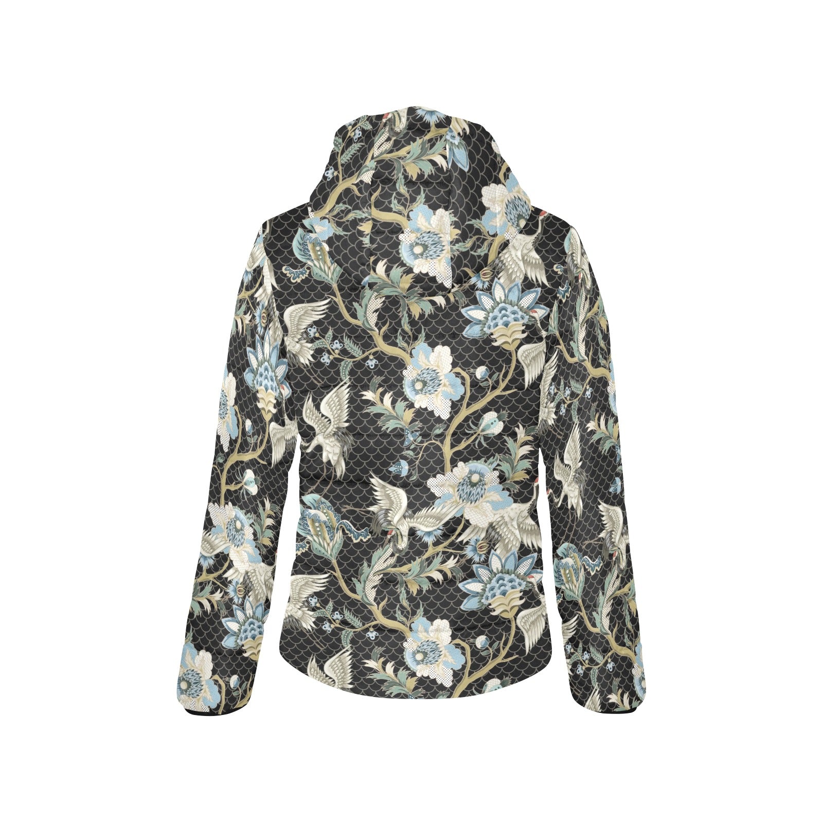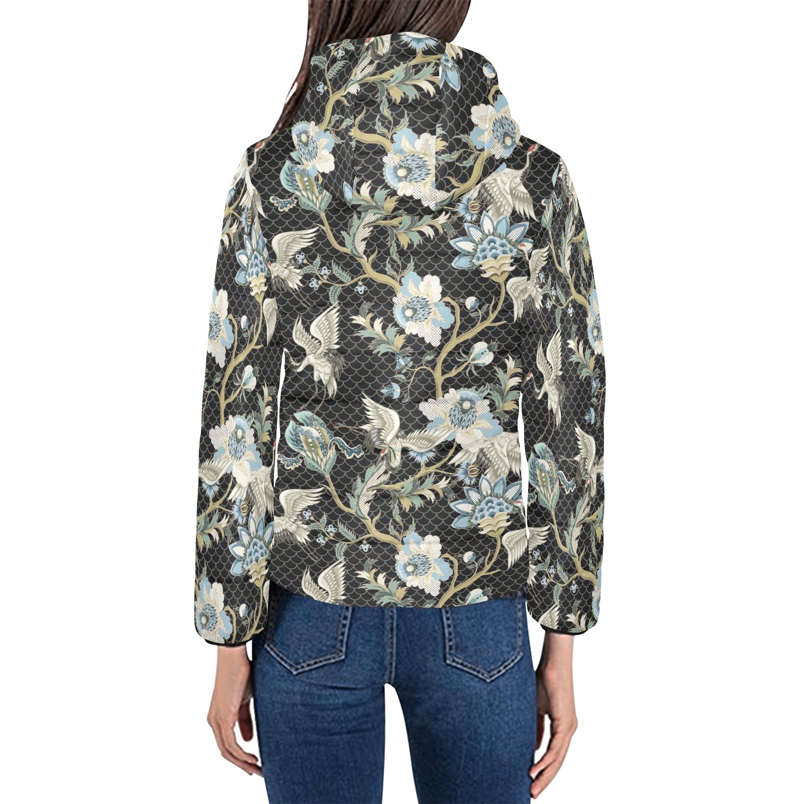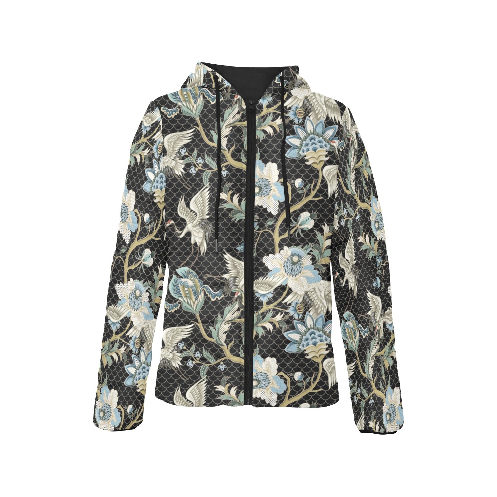 Japanese crane ornament elements Women's Padded Hooded Jacket