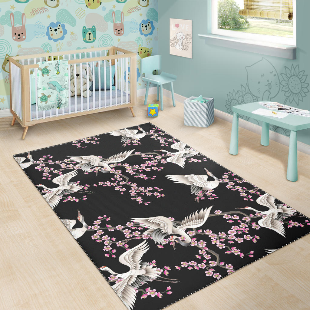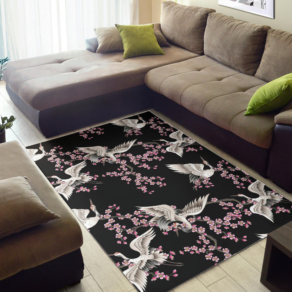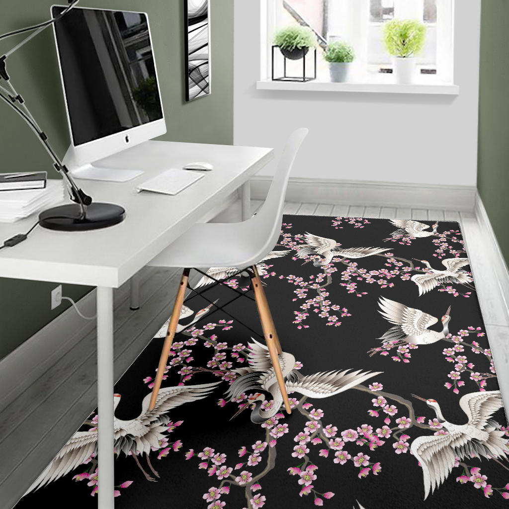 Japanese crane pink sakura pattern Area Rug is a uniqued design and limited item. It made to order, hand printed, and sewn with love in our factory.