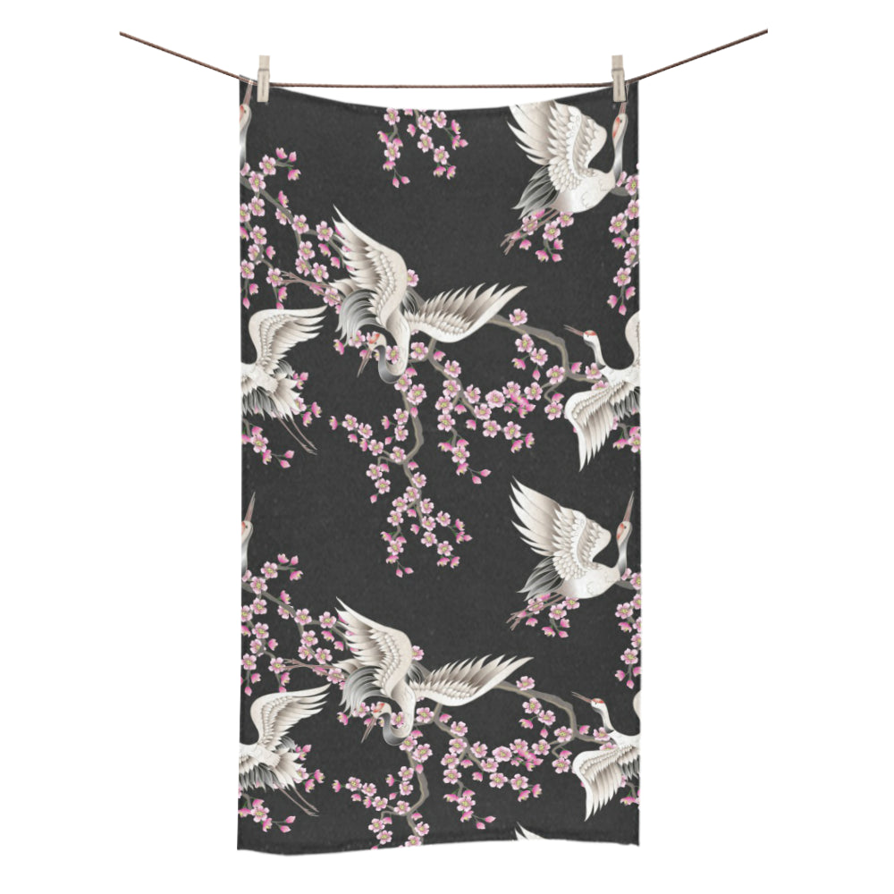 Japanese crane pink sakura pattern Bath Towel 30"x56" is a uniqued design and limited item. It made to order, hand printed, and sewn with love in our factory.