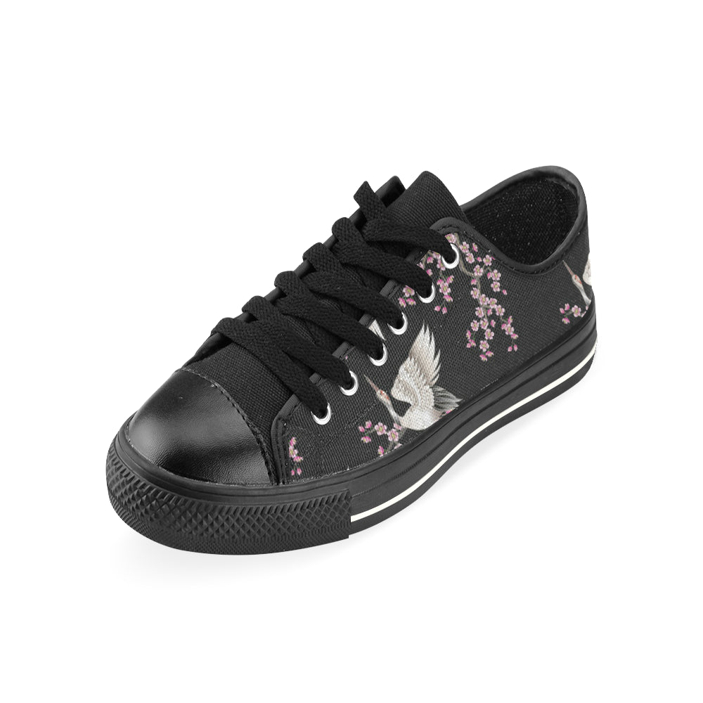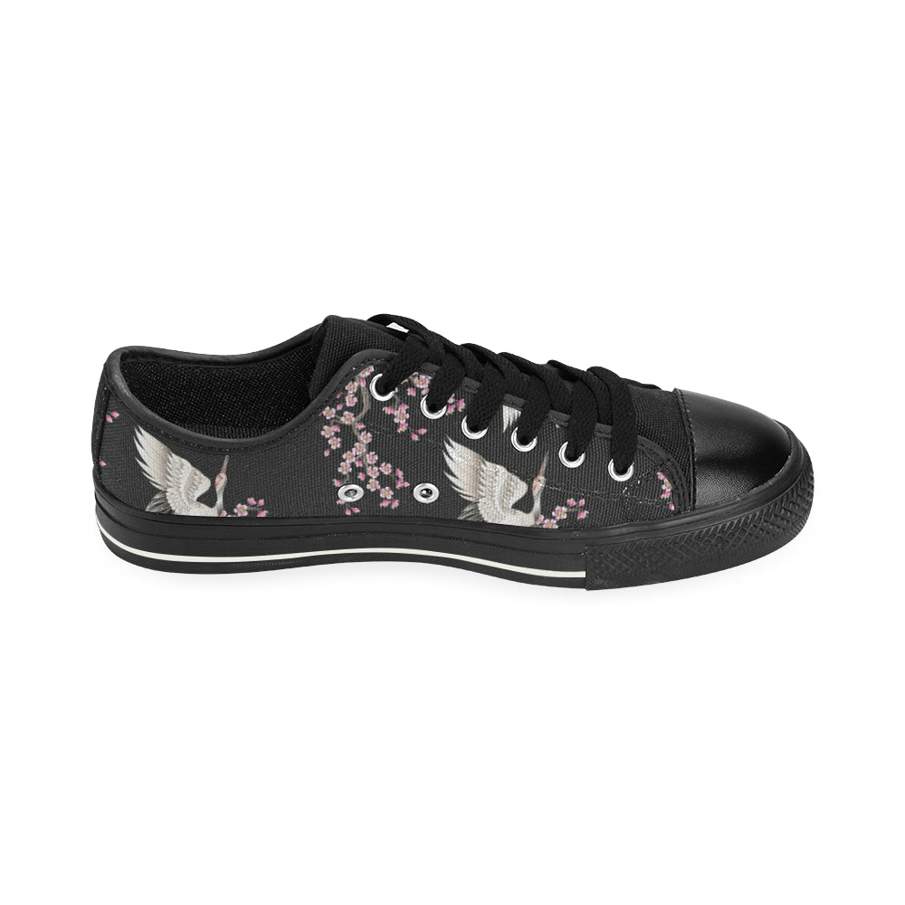 Japanese crane pink sakura pattern Men's Low Top Canvas Shoes Black