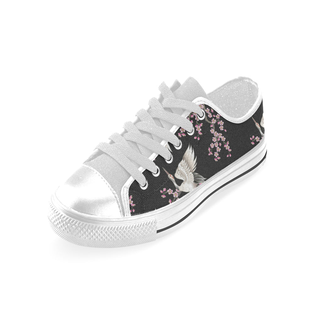 Japanese crane pink sakura pattern Men's Low Top Canvas Shoes White