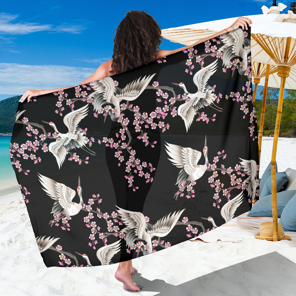 Japanese Crane Pink Sakura Pattern Sarong