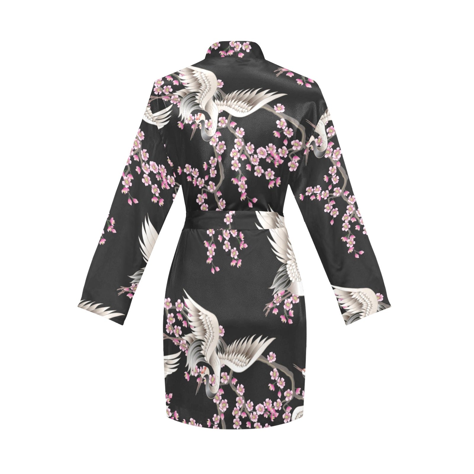 Japanese crane pink sakura pattern Women's Long Sleeve Belted Night Robe