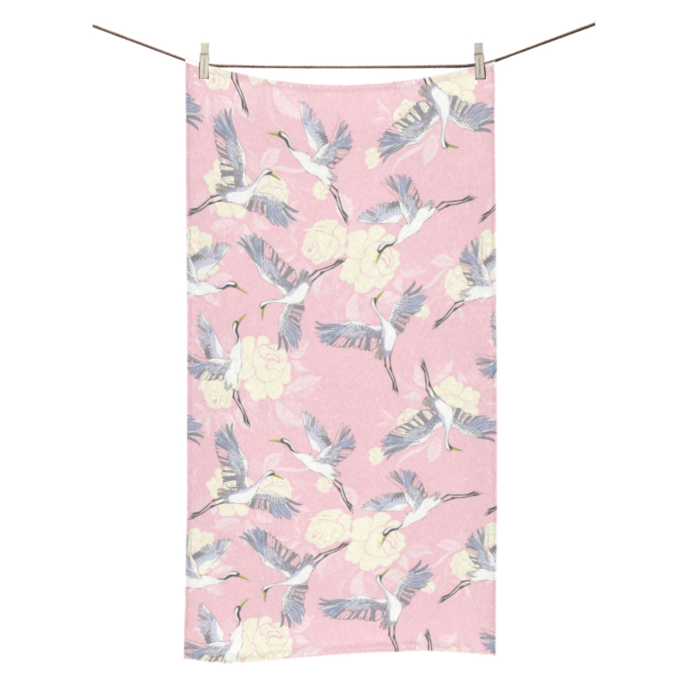Japanese crane rose pattern Bath Towel