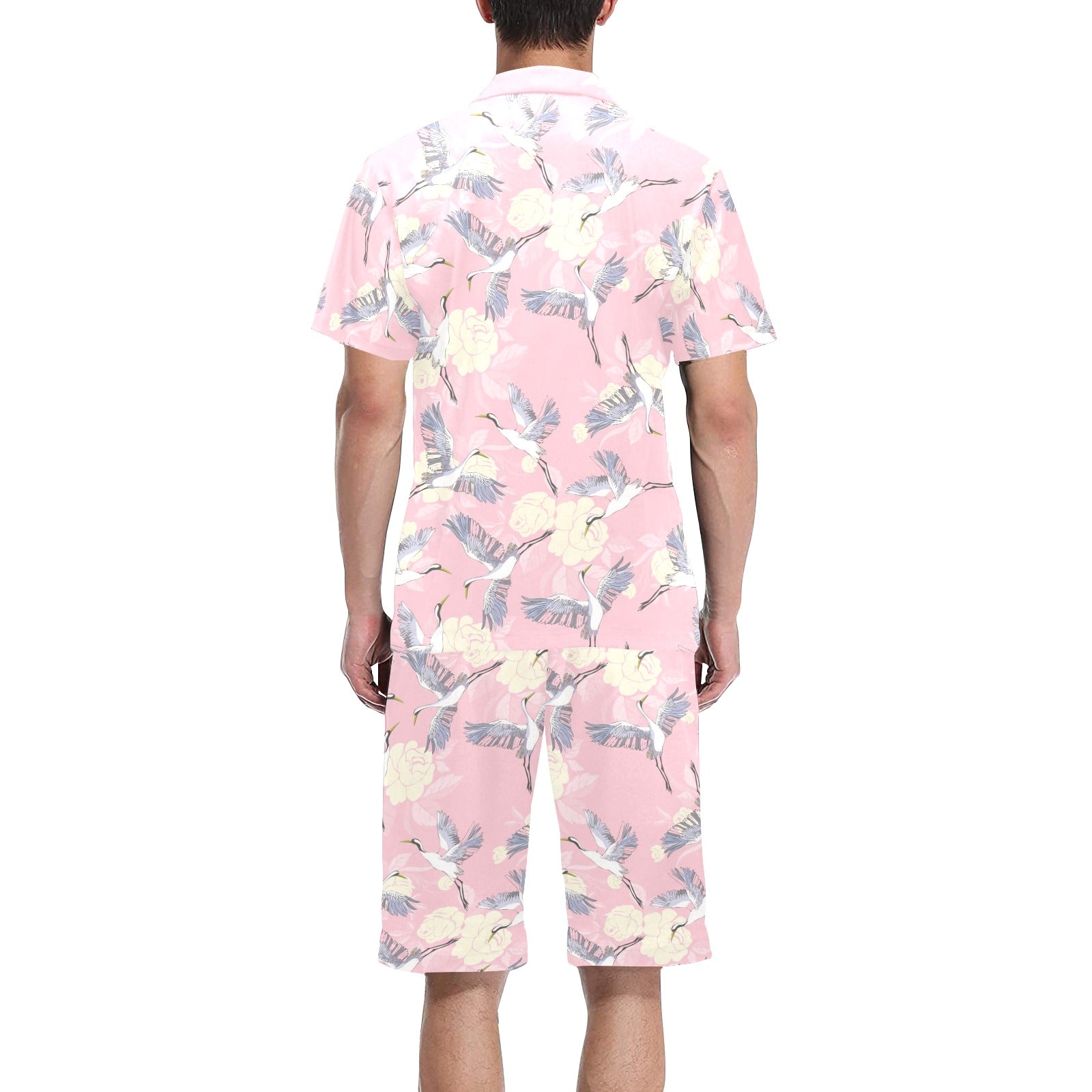 Japanese crane rose pattern Men's V-Neck Short Pajama Set