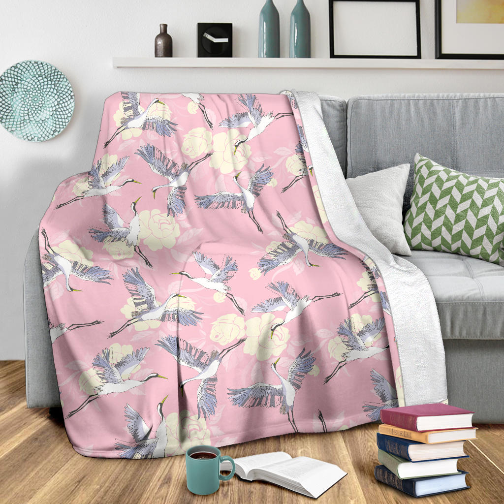 Japanese crane rose pattern Premium Blanket is a uniqued design and limited item. It made to order, hand printed, and sewn with love in our factory.