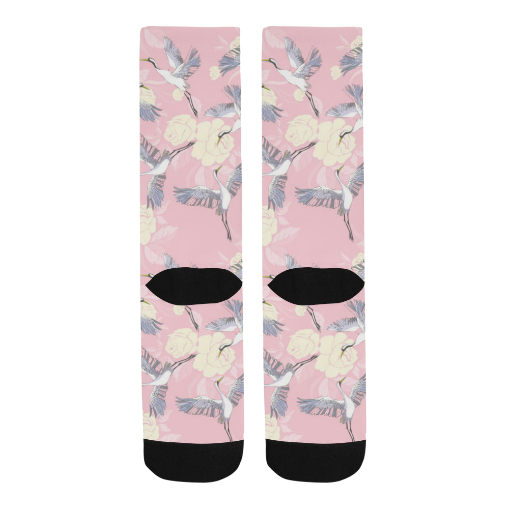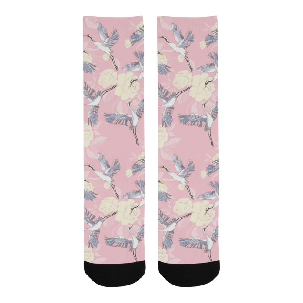 Japanese crane rose pattern Crew Socks are uniqued design and limited item. It made to order, hand printed, and sewn with love in our factory.