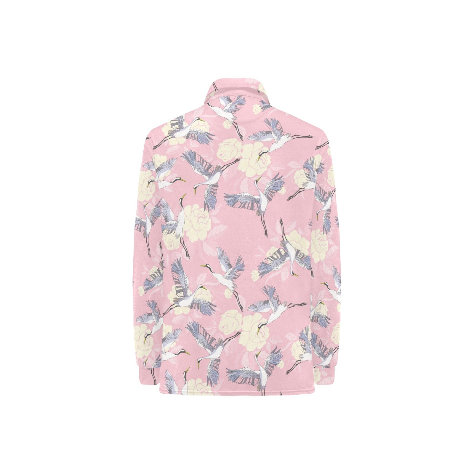 Japanese crane rose pattern Women's Long Sleeve Polo Shirt
