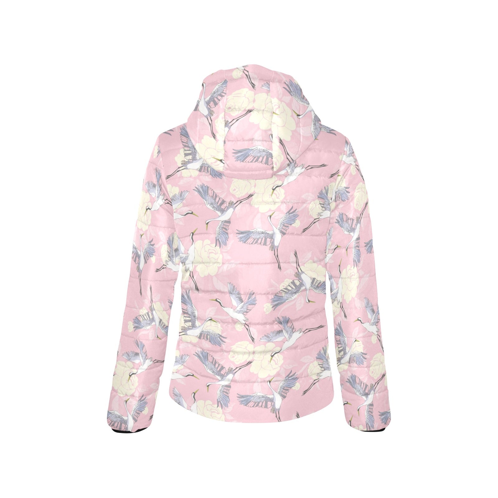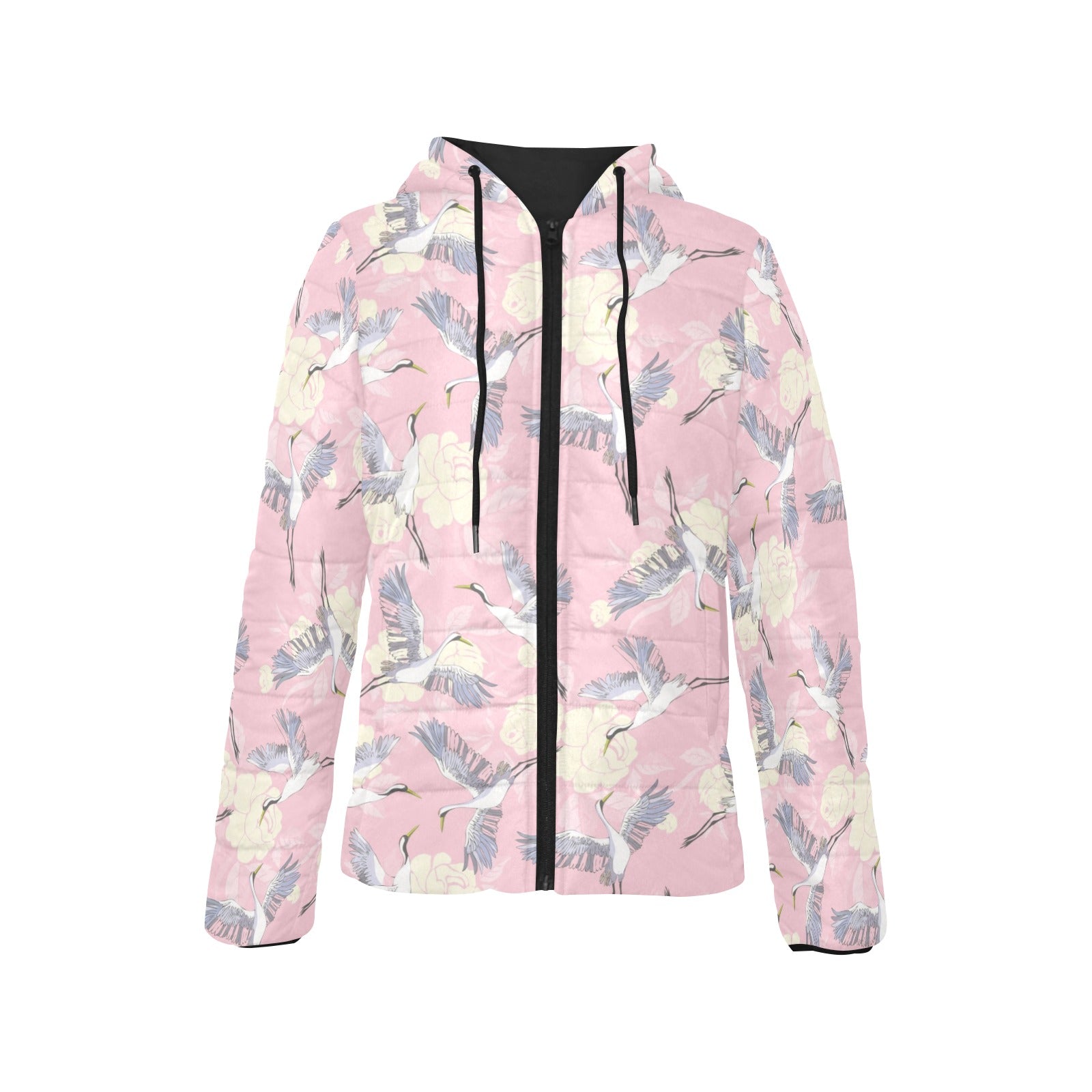 Japanese crane rose pattern Women's Padded Hooded Jacket
