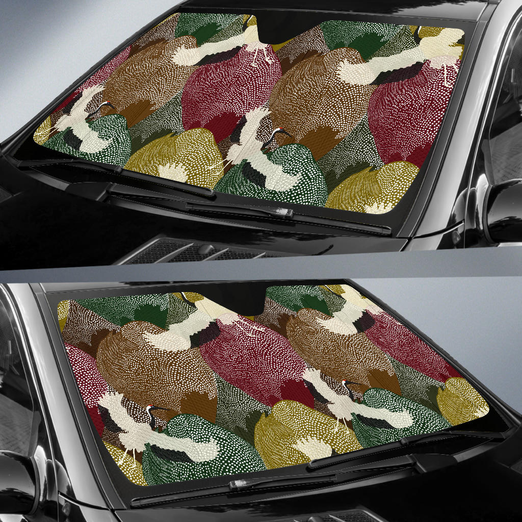 Japanese Cranes Flying Forest Dot Pattern Car Sun Shade