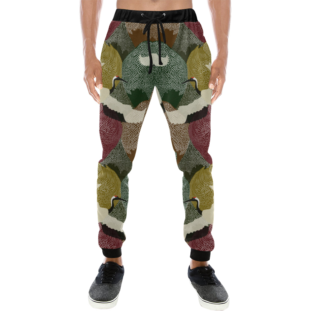 Japanese cranes flying forest dot pattern Unisex Casual Sweatpants