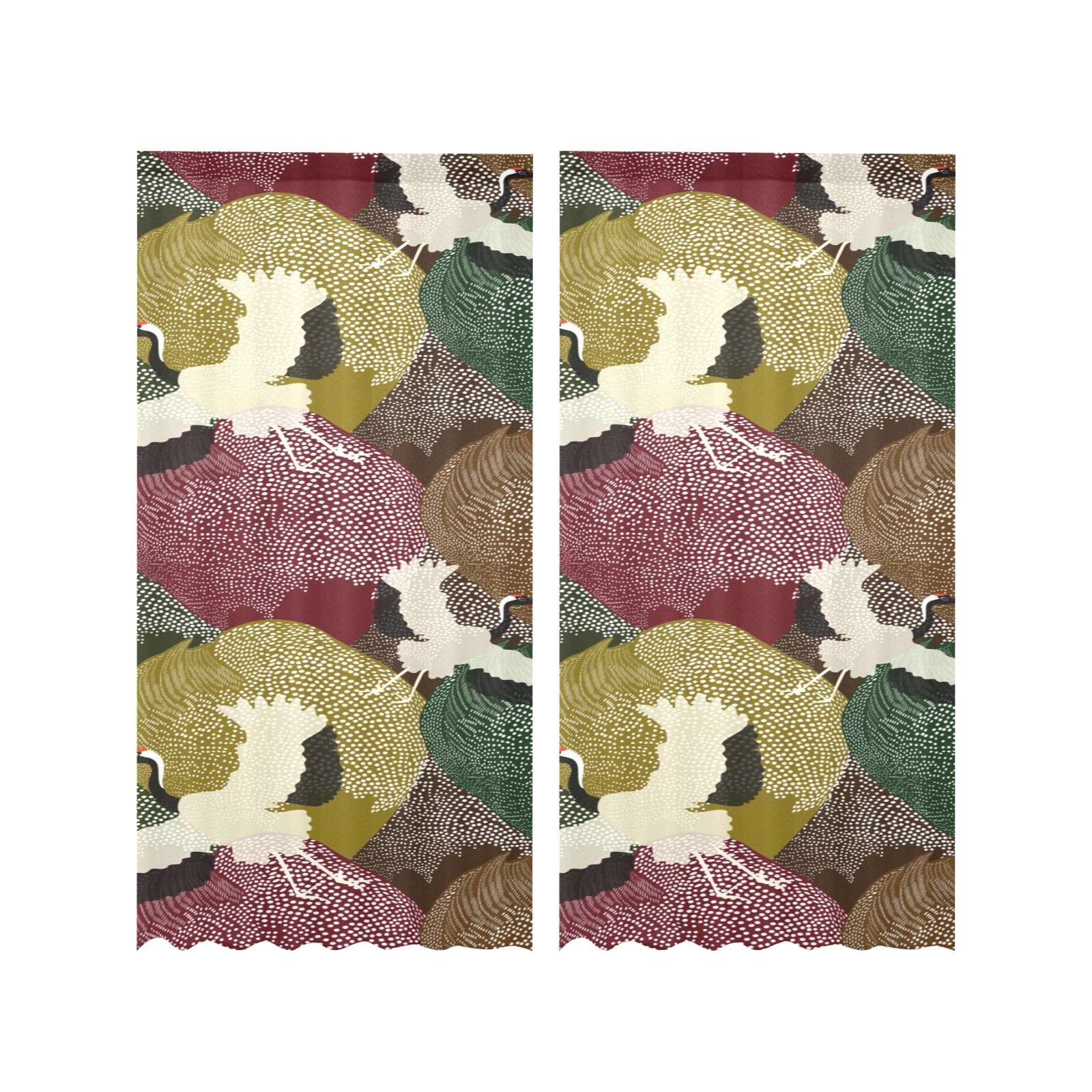 Japanese cranes flying forest dot pattern Gauze Curtain