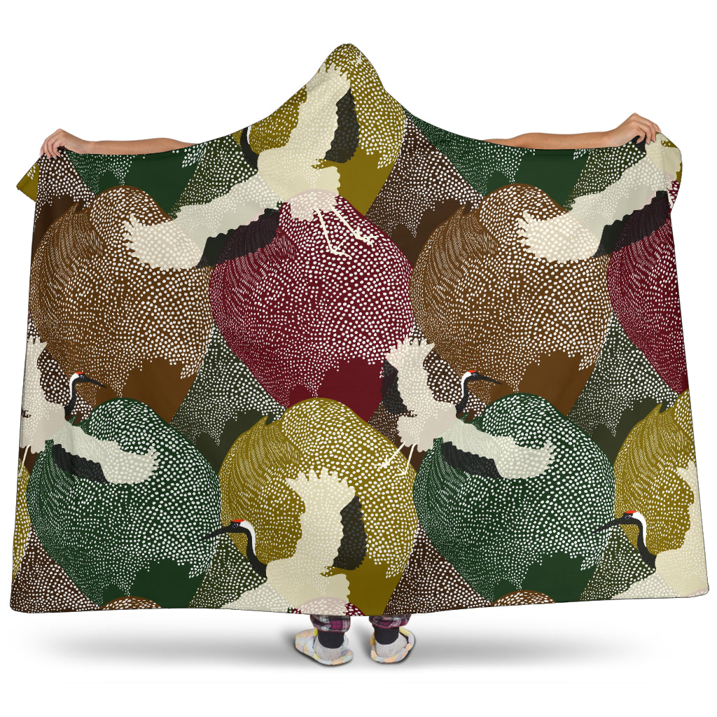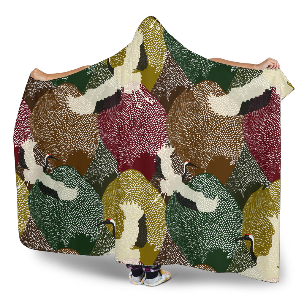 Japanese cranes flying forest dot pattern Hooded Blanket are custom-made-to-order and handcrafted to the highest quality standards.