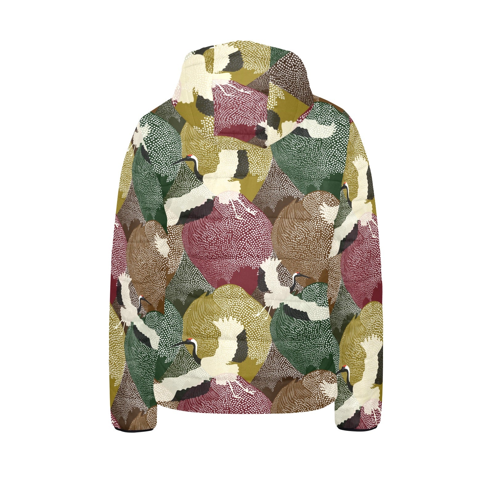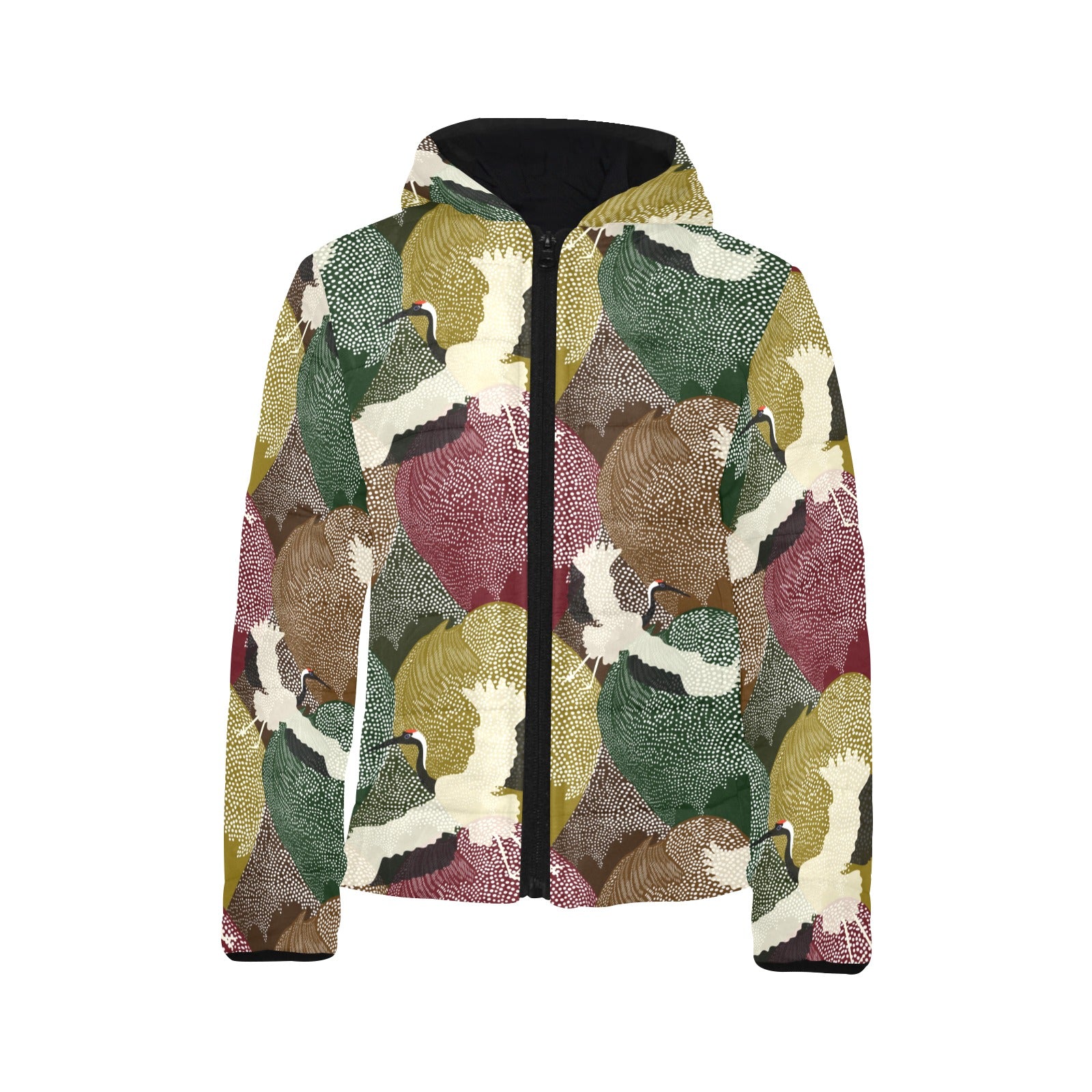 Japanese cranes flying forest dot pattern Kids' Boys' Girls' Padded Hooded Jacket