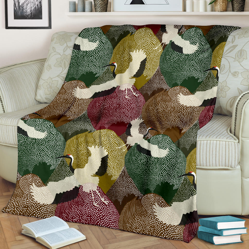 Japanese cranes flying forest dot pattern Premium Blanket is a uniqued design and limited item. It made to order, hand printed, and sewn with love in our factory.
