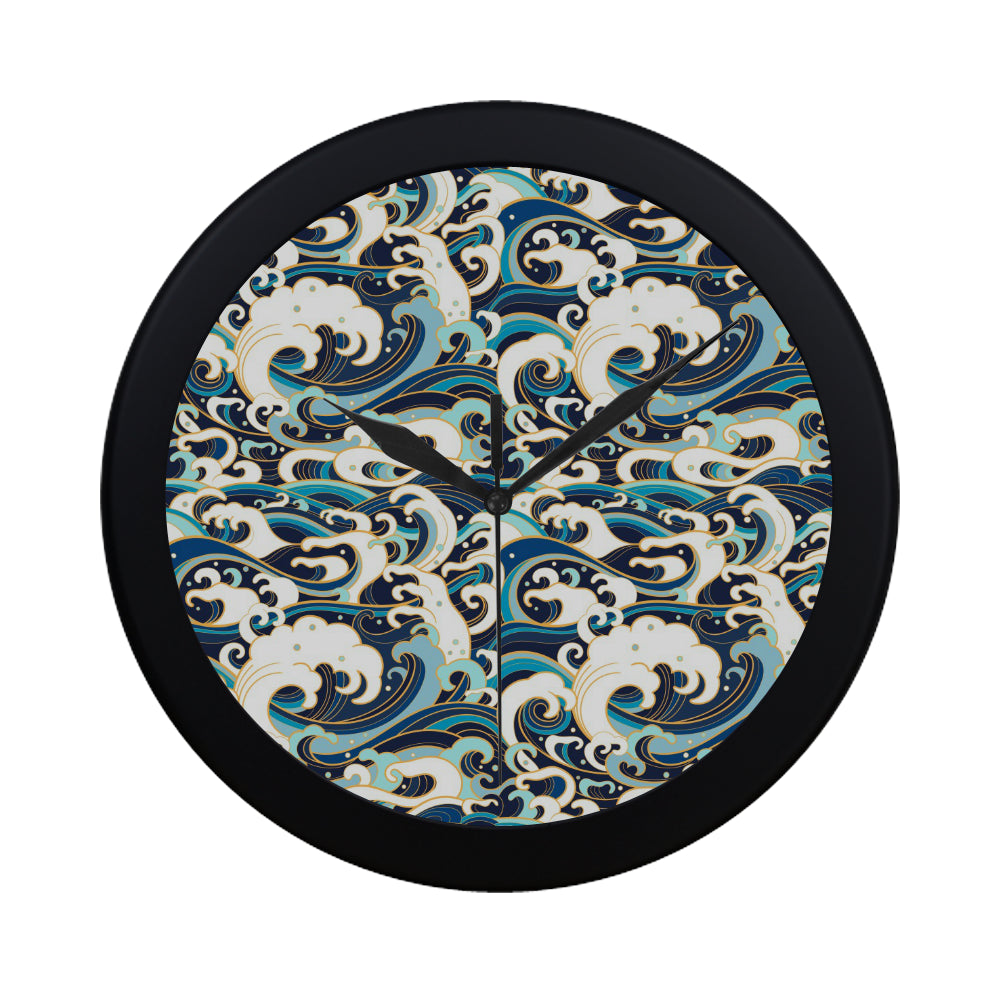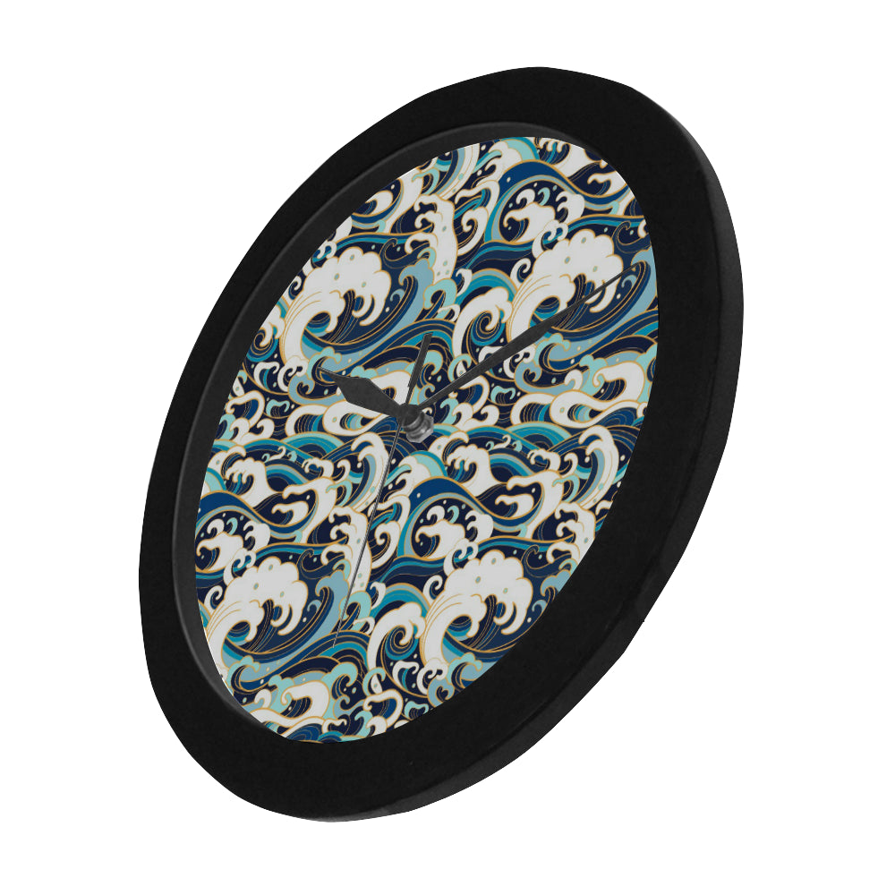 Japanese wave pattern Elegant Black Wall Clock is a uniqued design and limited item. It made to order, hand printed, and sewn with love in our factory.
