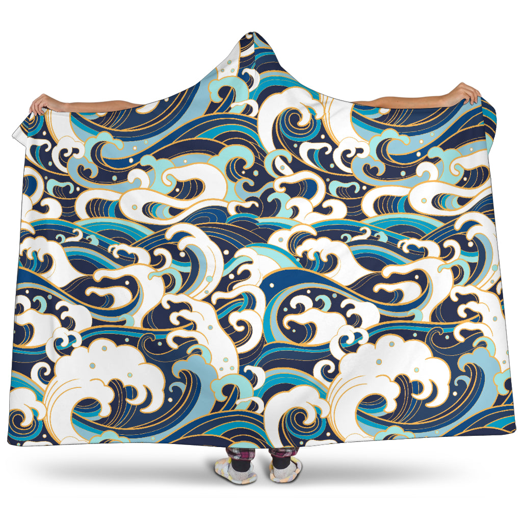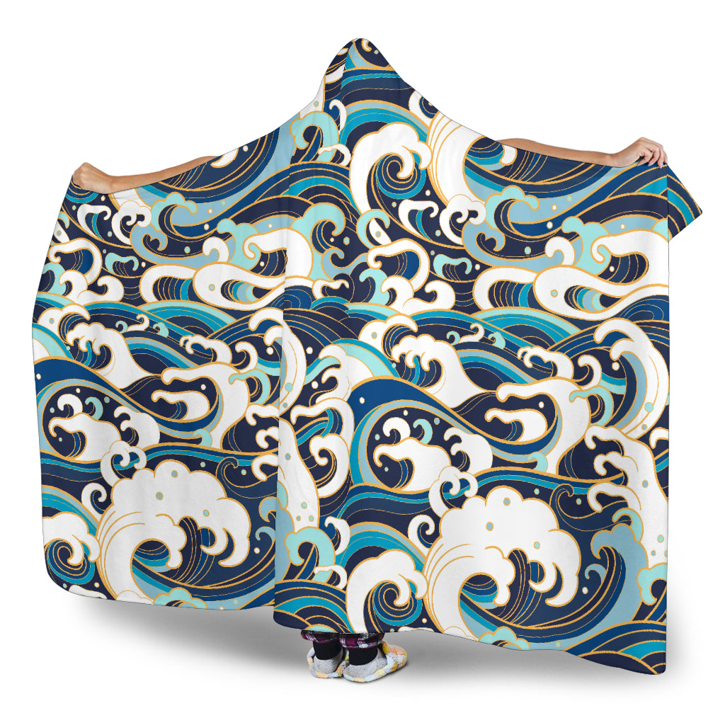 Japanese wave pattern Hooded Blanket are custom-made-to-order and handcrafted to the highest quality standards.
