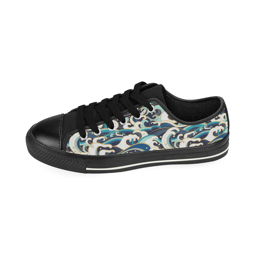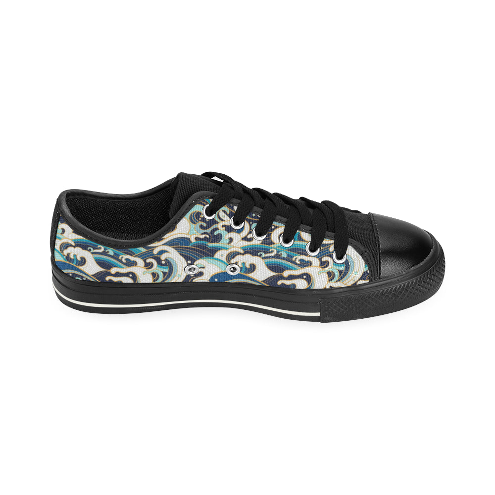 Japanese wave pattern Men's Low Top Canvas Shoes Black