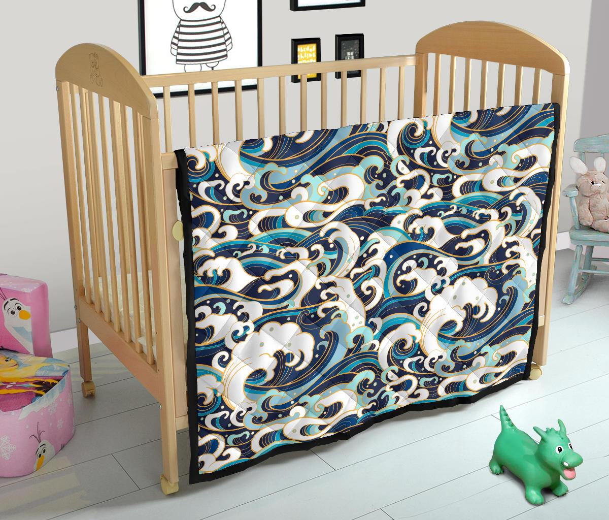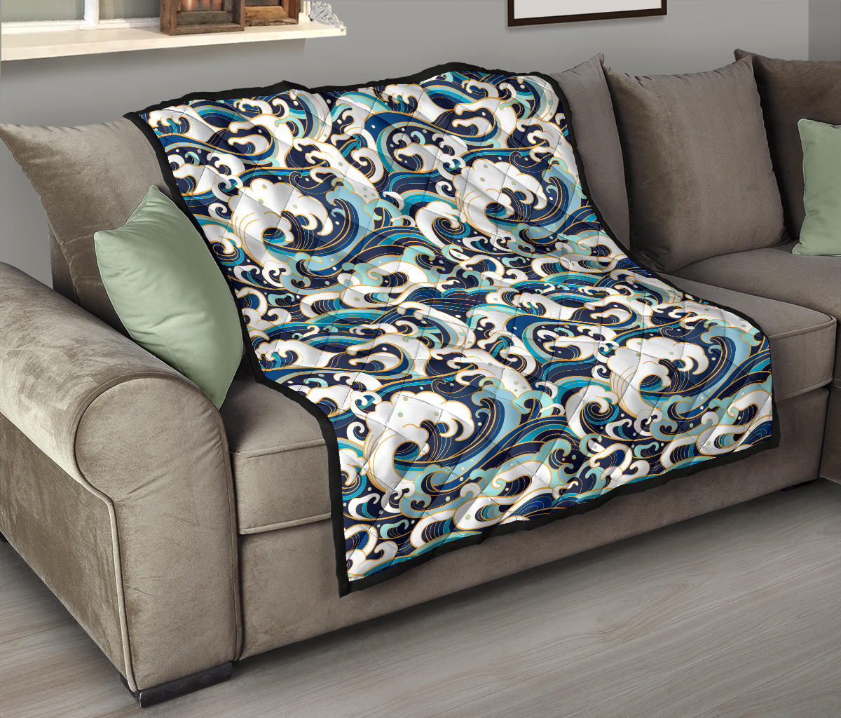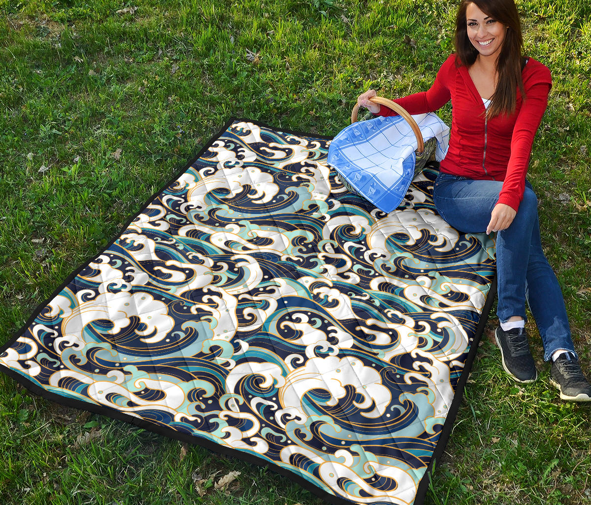Japanese Wave Pattern Premium Quilt is a uniqued design and limited item. It made to order, hand printed, and sewn with love in our factory.