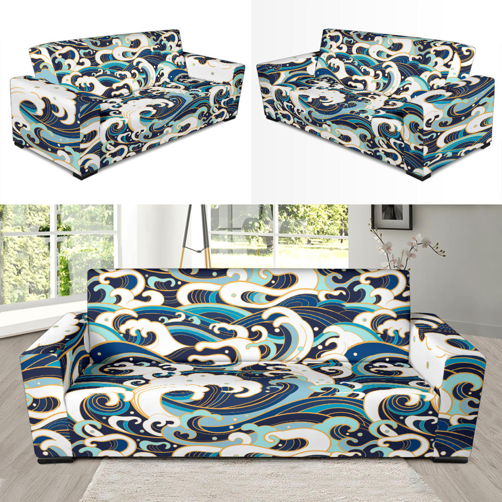 Japanese wave pattern Sofa Slipcover is a uniqued design and limited item. It made to order, hand printed, and sewn with love in our factory.