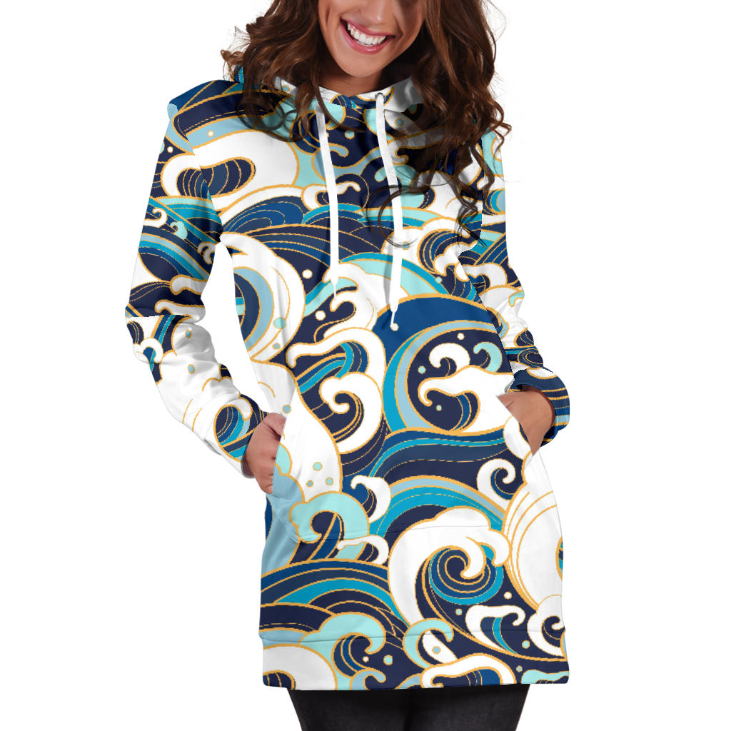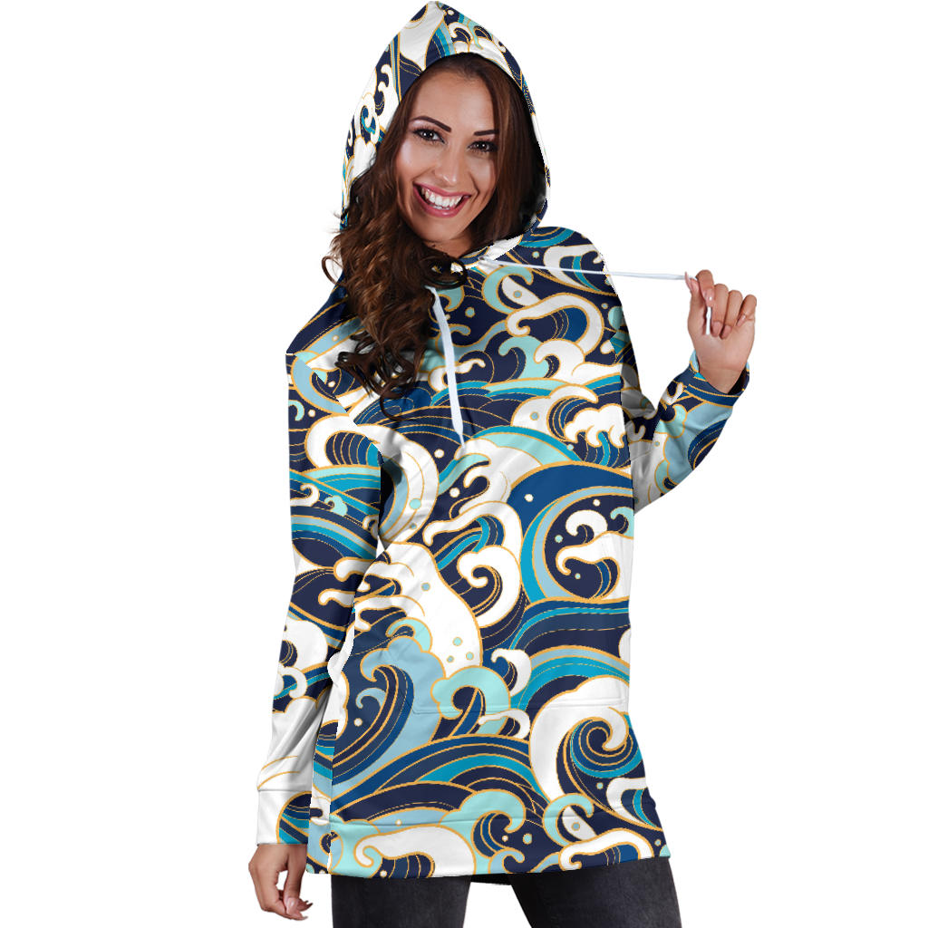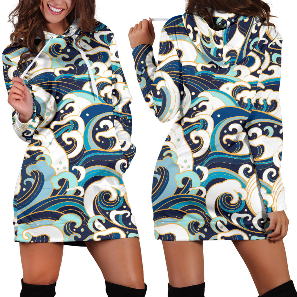 Japanese wave pattern Women's Hoodie Dress is a uniqued design and limited item. It made to order, hand printed, and sewn with love in our factory.