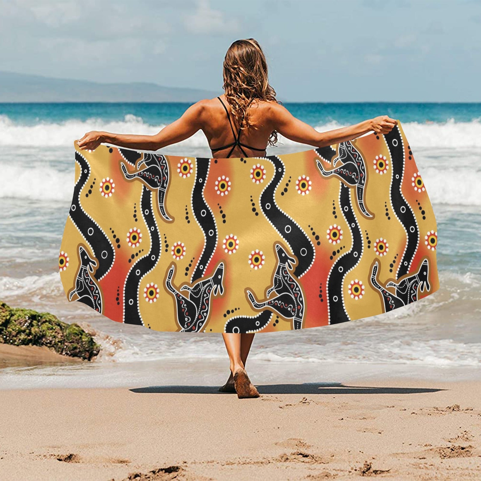 Kangaroo Australian aboriginal art pattern Beach Towel