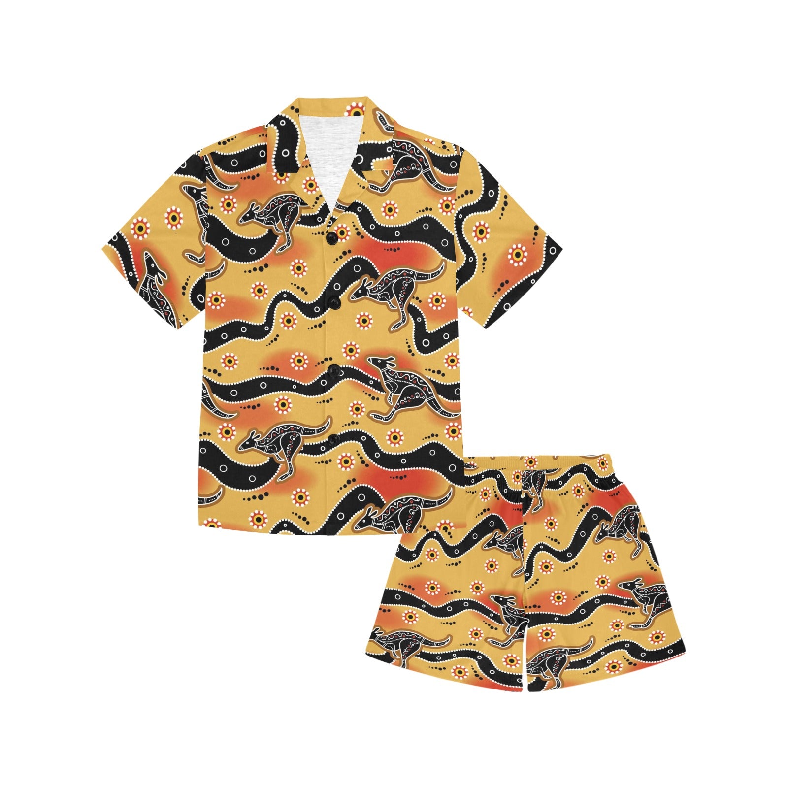 Kangaroo Australian aboriginal art pattern Kids' Boys' Girls' V-Neck Short Pajama Set