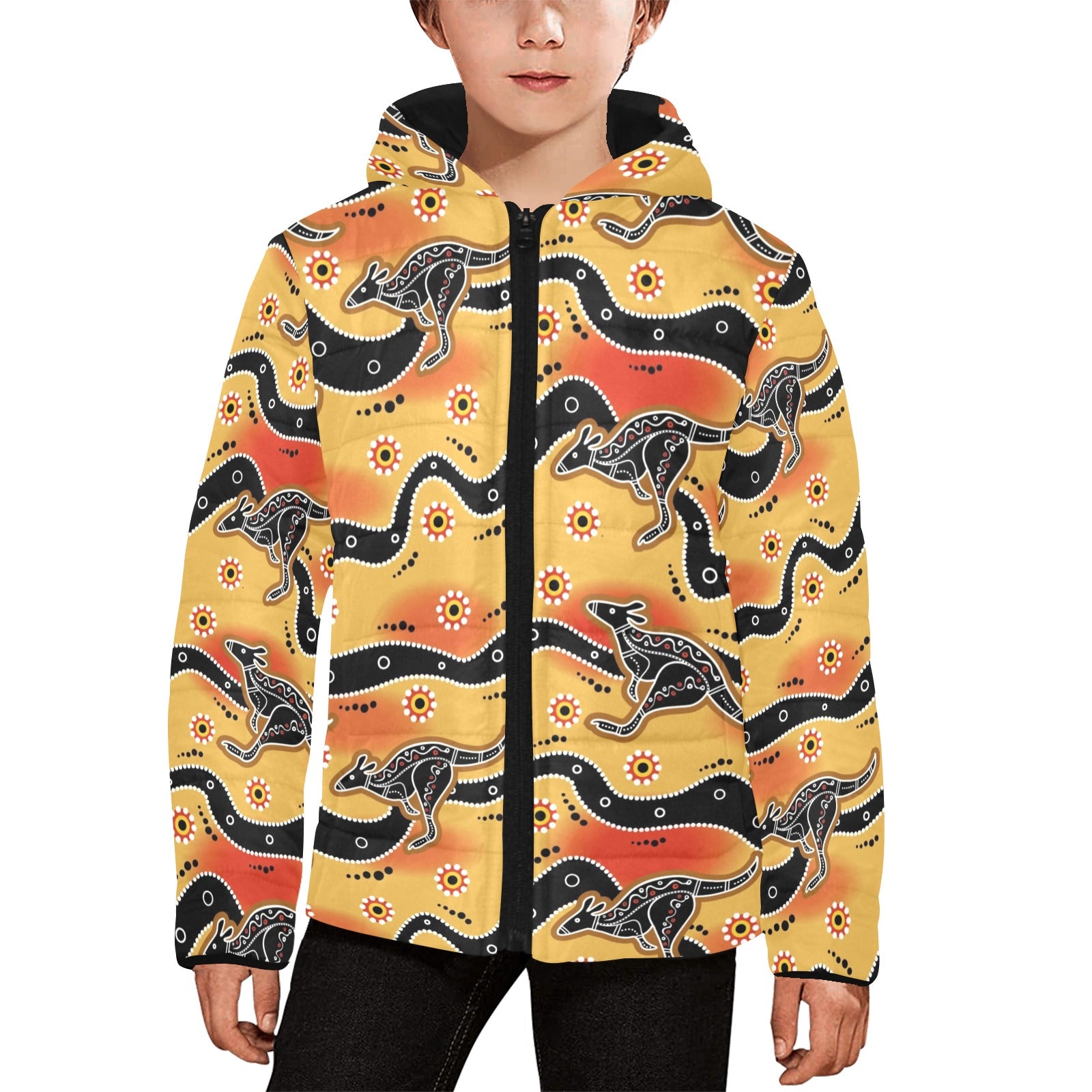 Kangaroo Australian aboriginal art pattern Kids' Boys' Girls' Padded Hooded Jacket