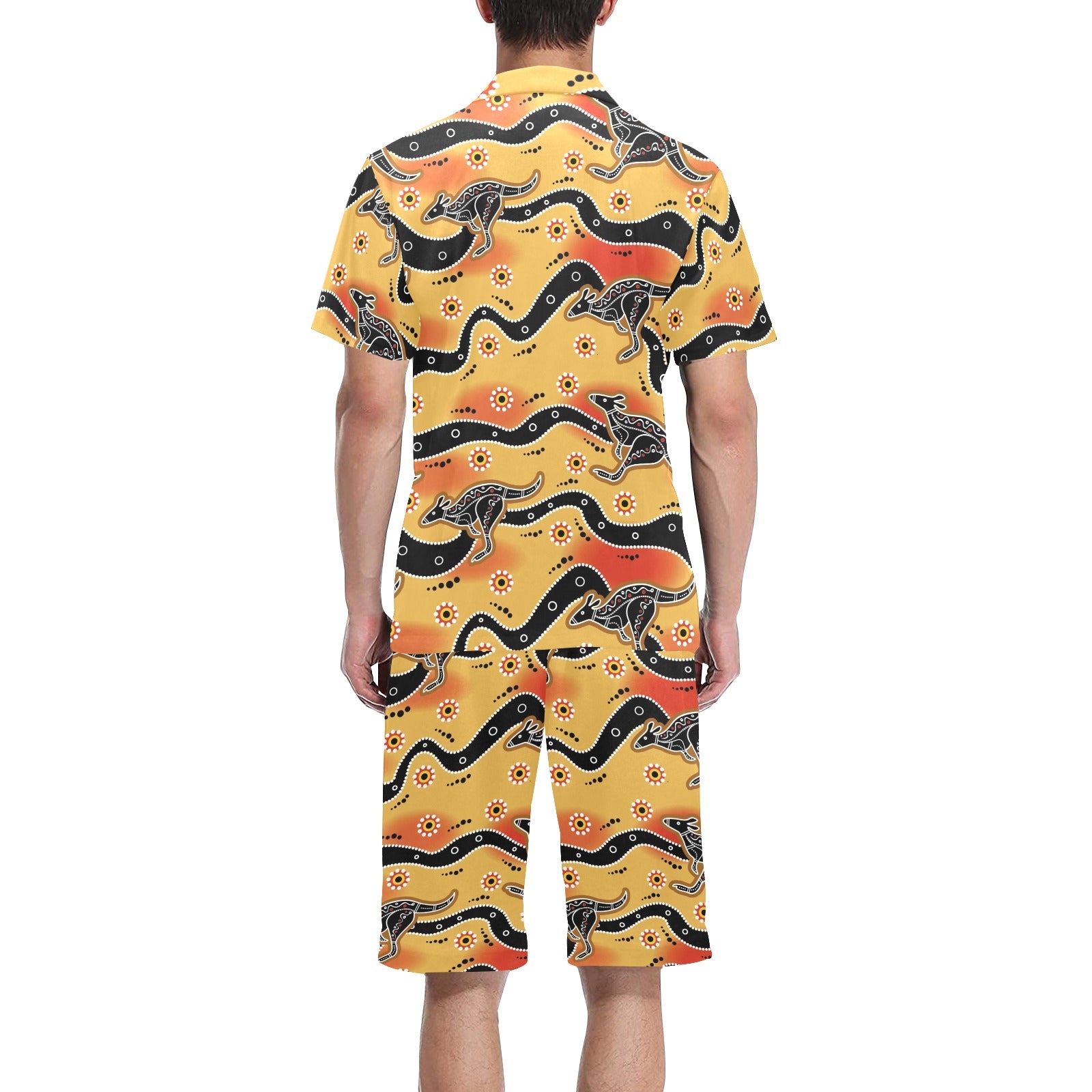 Kangaroo Australian aboriginal art pattern Men's V-Neck Short Pajama Set