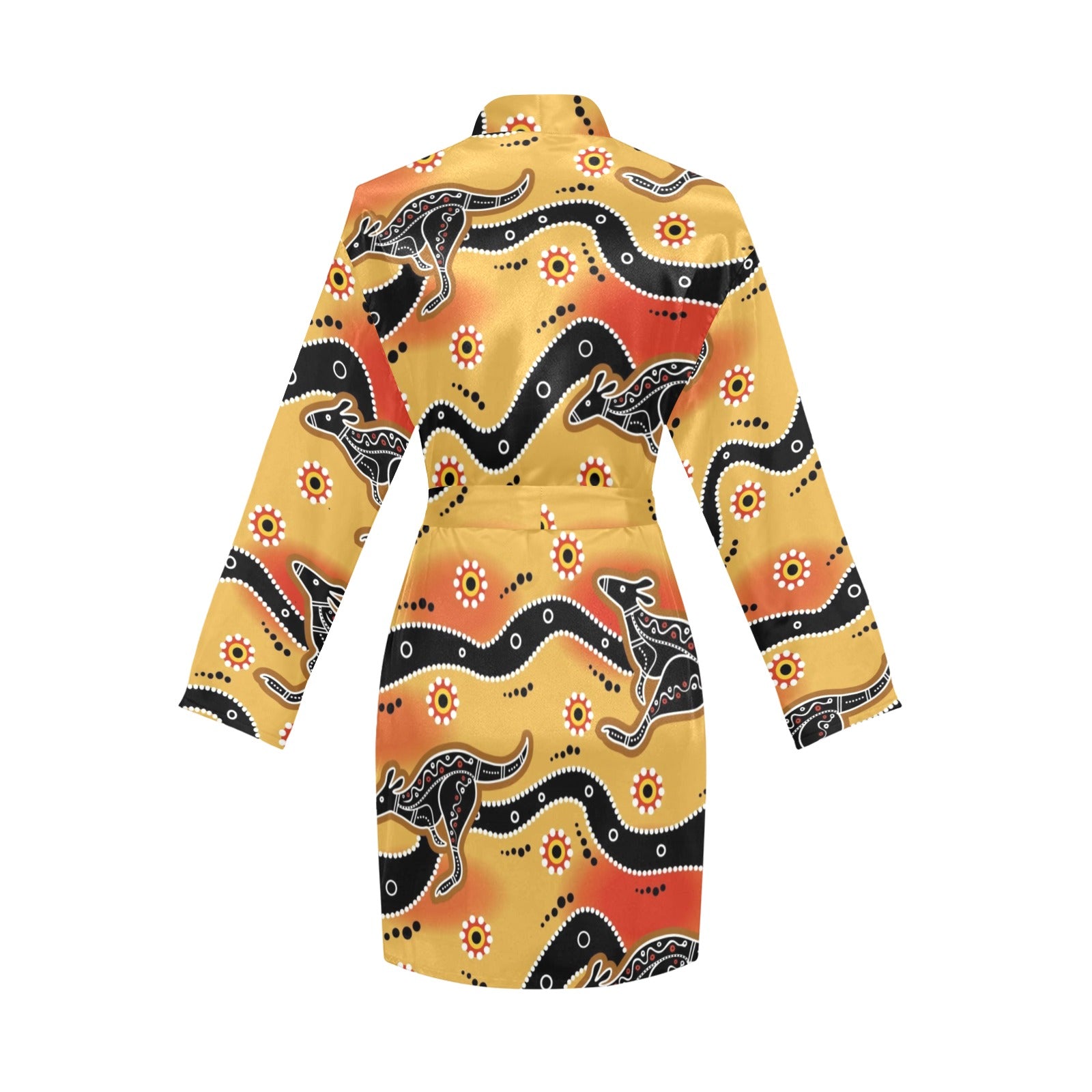Kangaroo Australian aboriginal art pattern Women's Long Sleeve Belted Night Robe