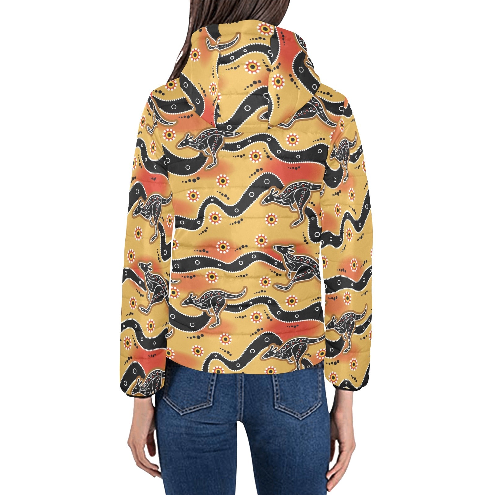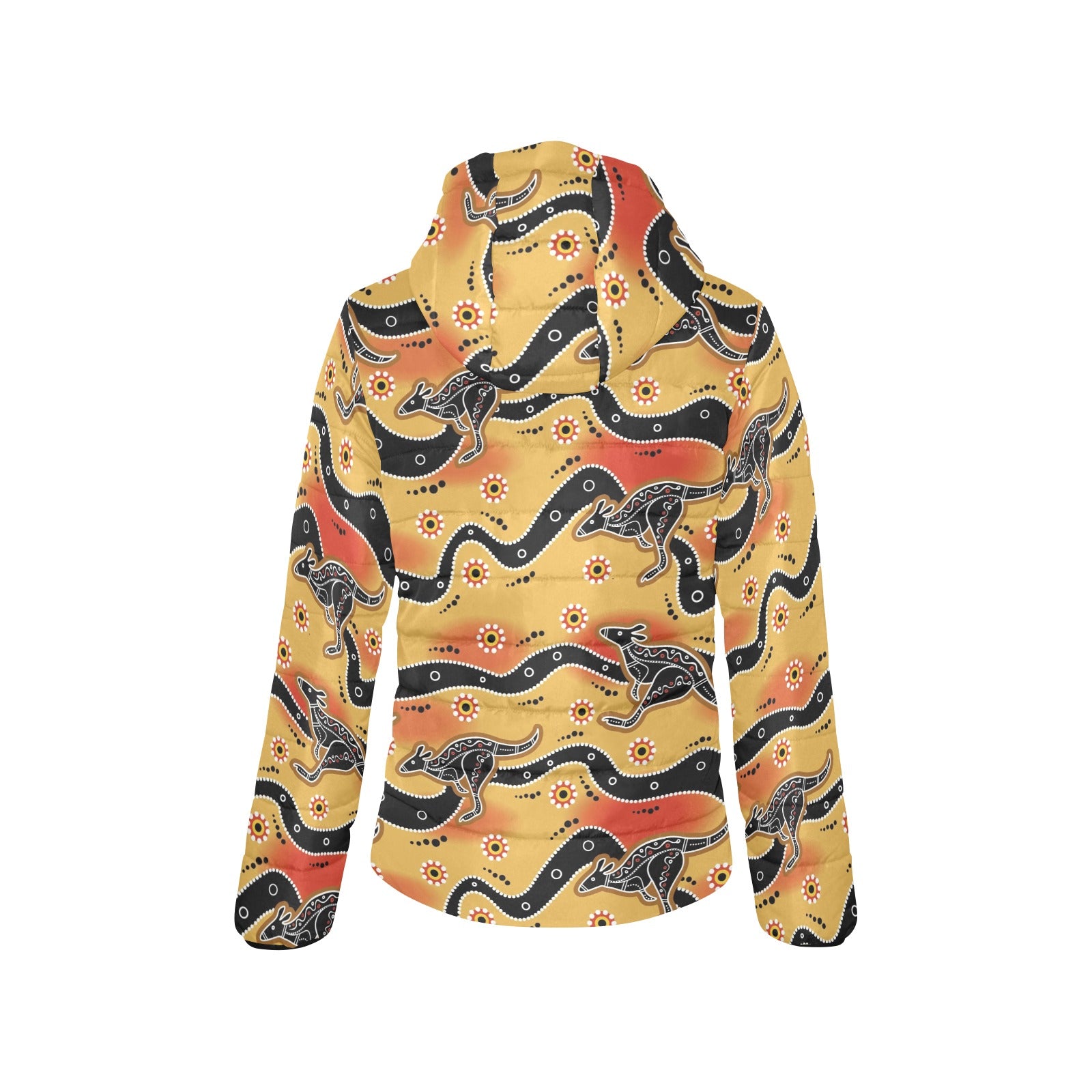 Kangaroo Australian aboriginal art pattern Women's Padded Hooded Jacket