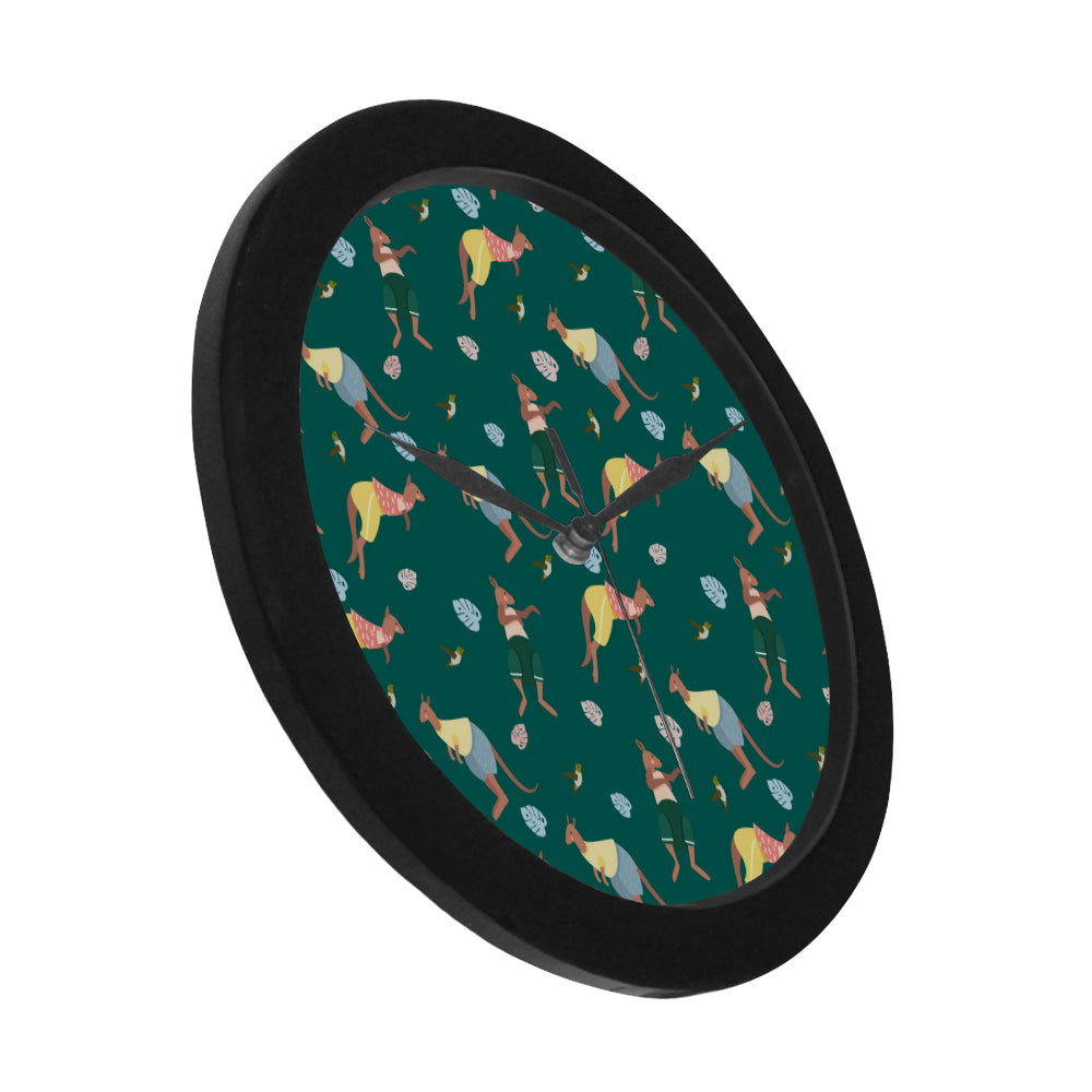 Kangaroo leaves pattern Elegant Black Wall Clock