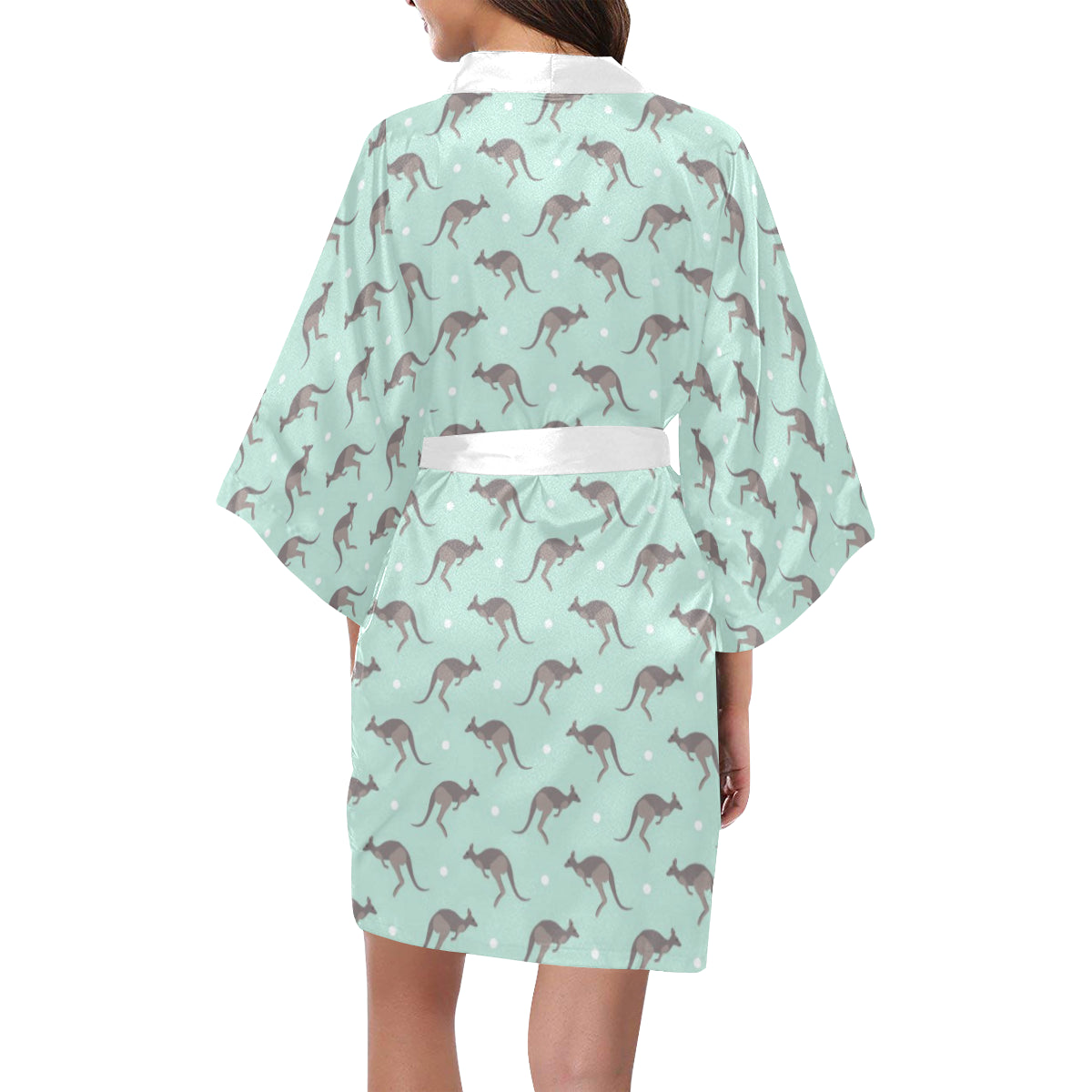Kangaroo pattern background Women's Short Kimono Robe is a uniqued design and limited item. It made to order, hand printed, and sewn with love in our factory.