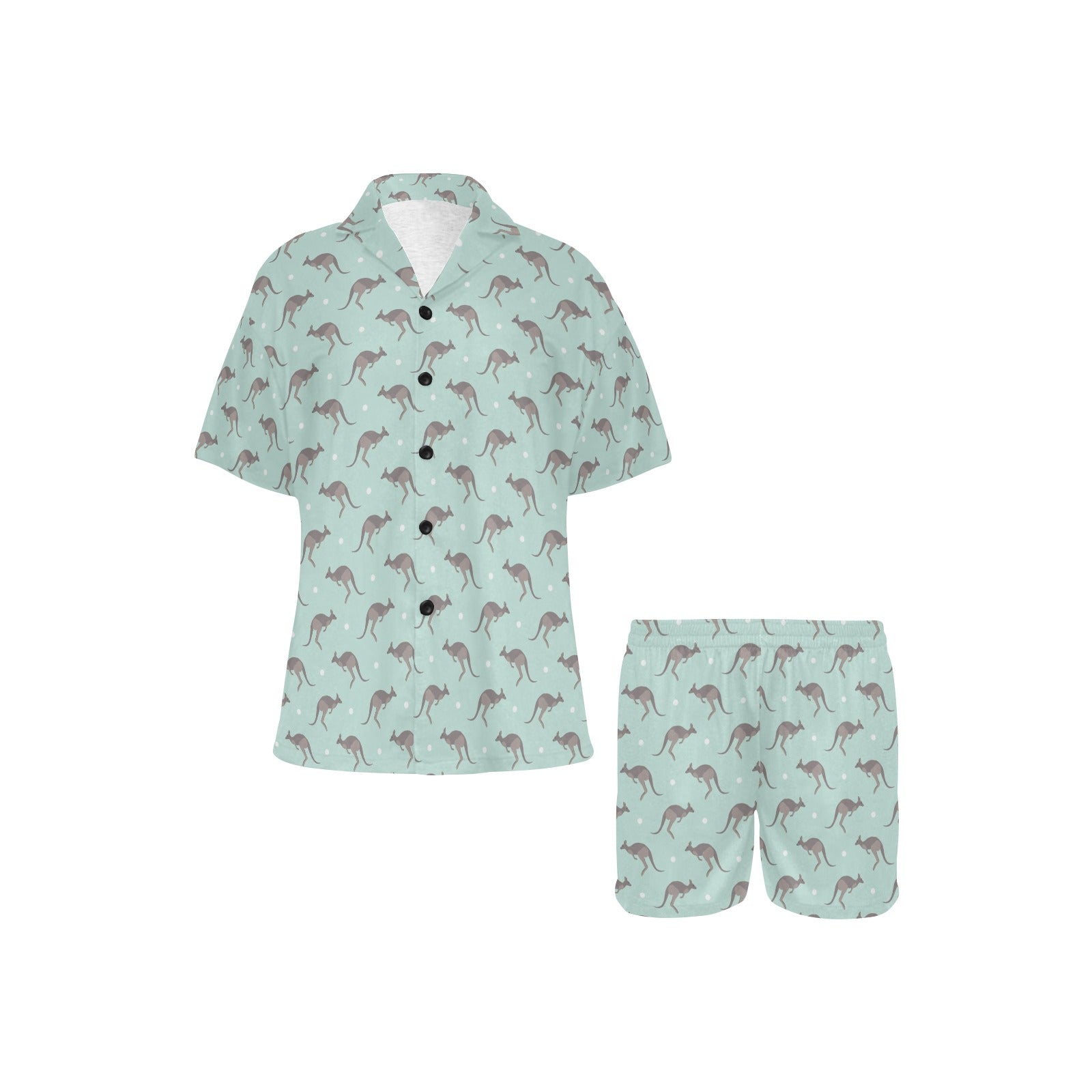 Kangaroo pattern background Women's V-Neck Short Pajama Set