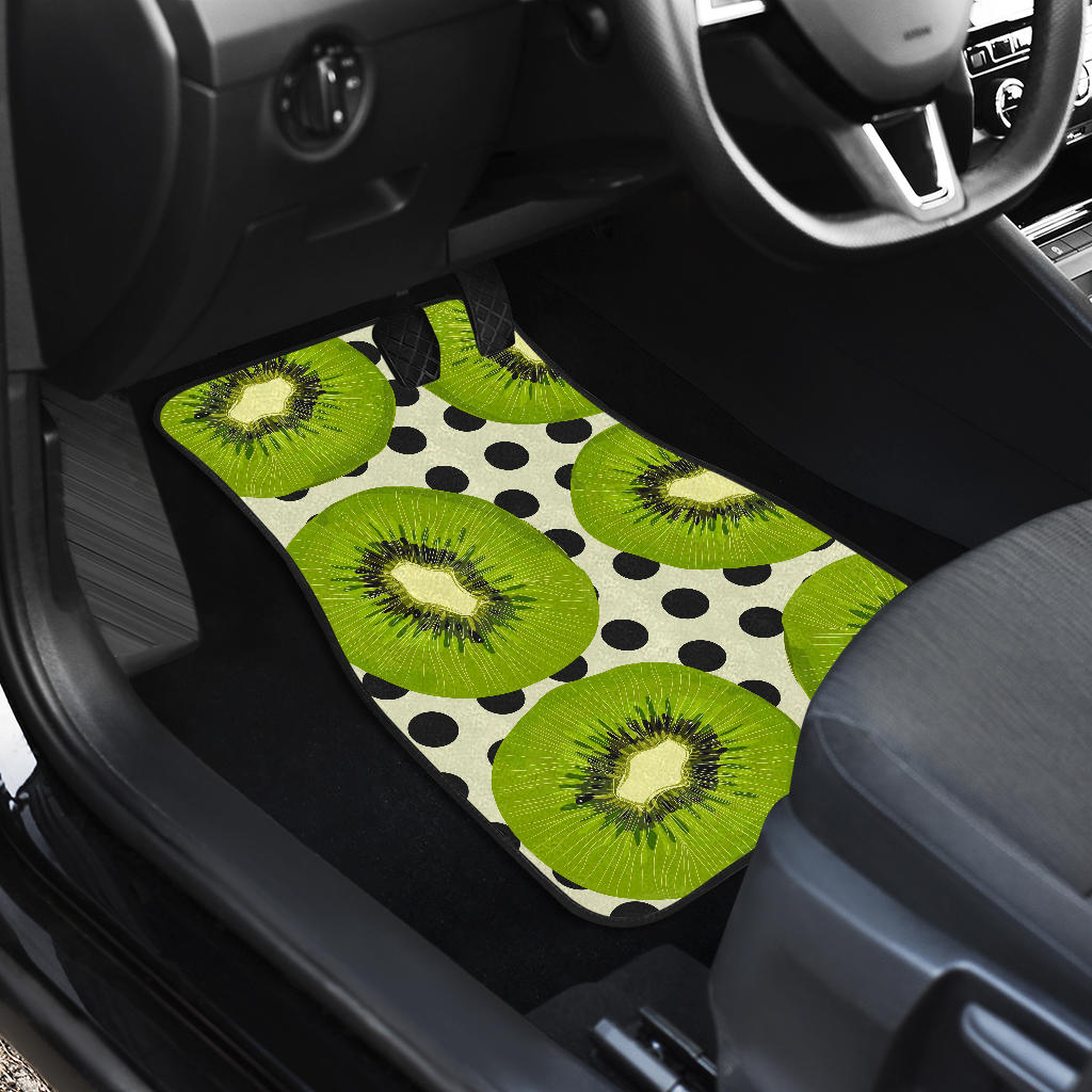 kiwi black dot background Front Car Mats are uniqued design and limited item. It made to order, hand printed, and sewn with love in our factory.