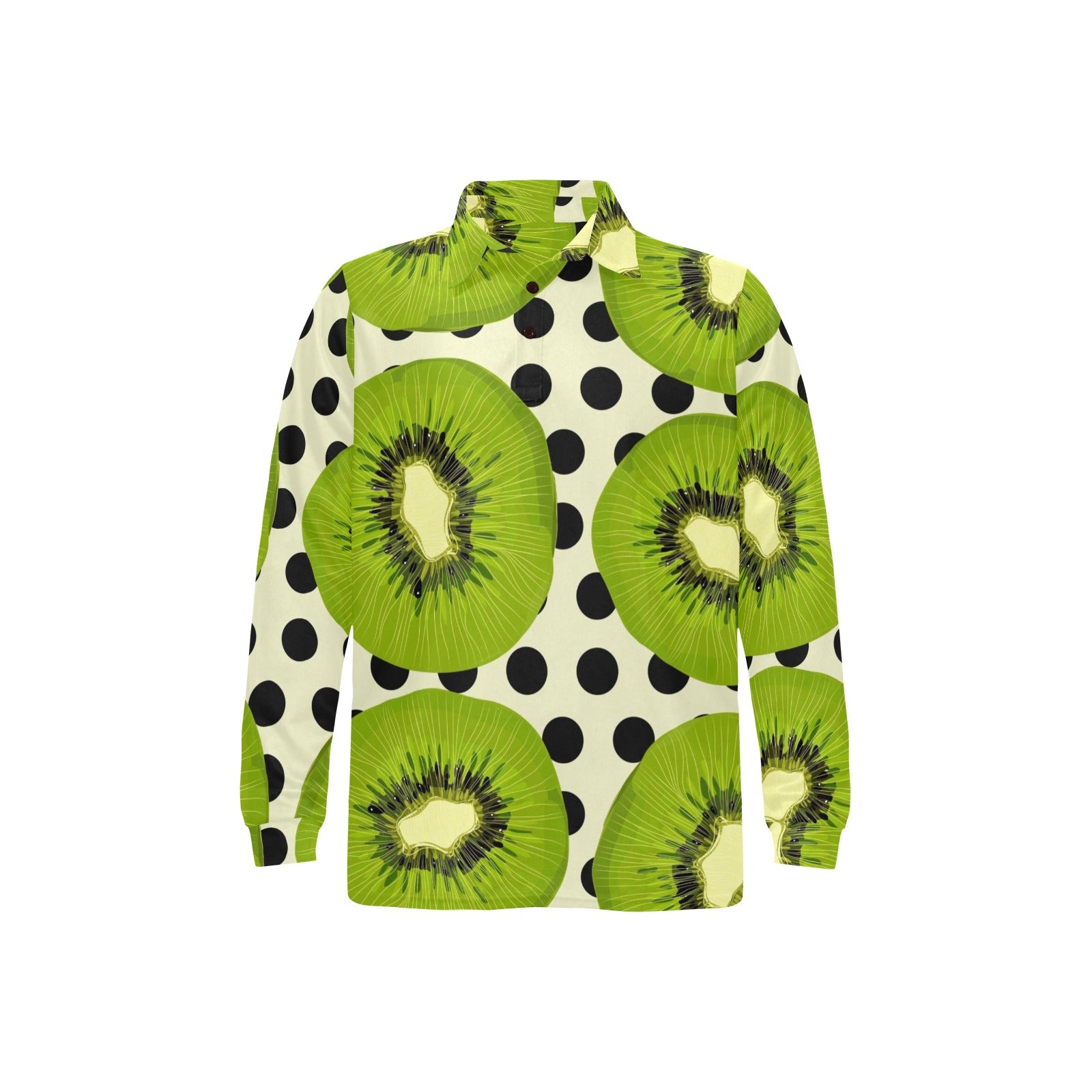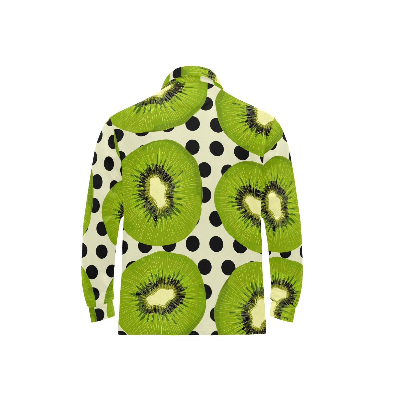 kiwi black dot background Men's Long Sleeve Polo Shirt