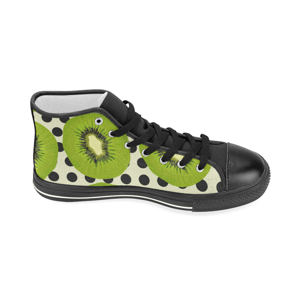 kiwi black dot background Women's High Top Canvas Shoes Black