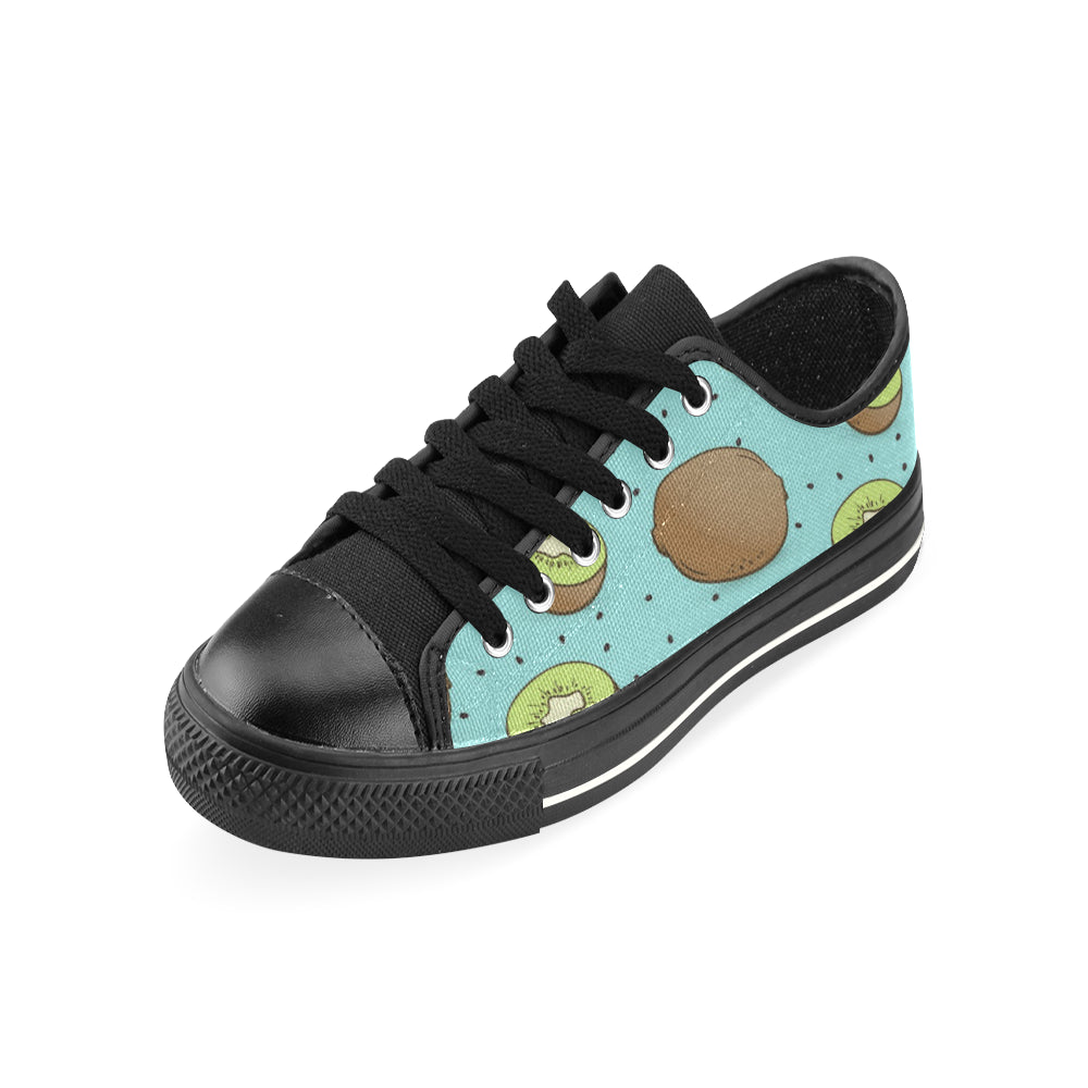 Kiwi blue background Men's Low Top Canvas Shoes Black