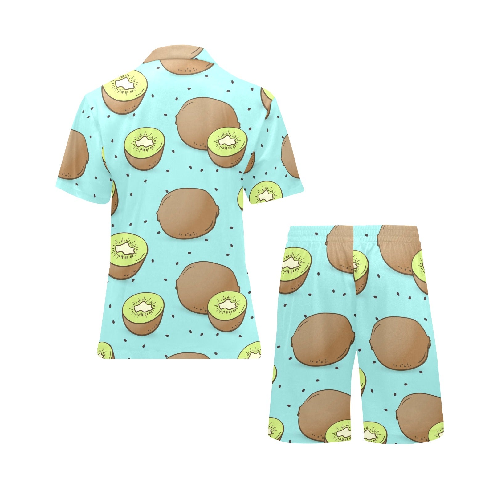 Kiwi blue background Men's V-Neck Short Pajama Set