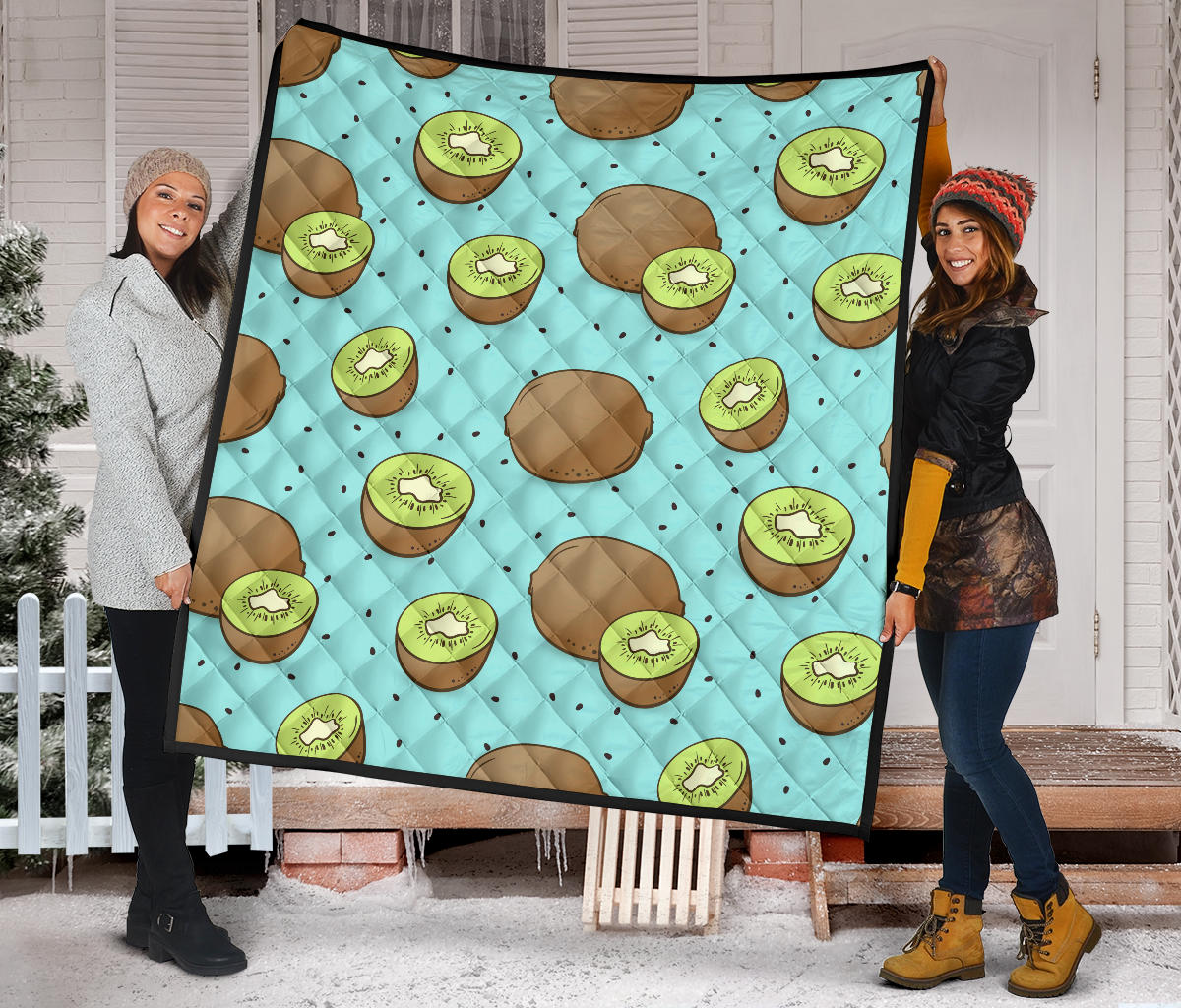 Kiwi Blue Background Premium Quilt is a uniqued design and limited item. It made to order, hand printed, and sewn with love in our factory.