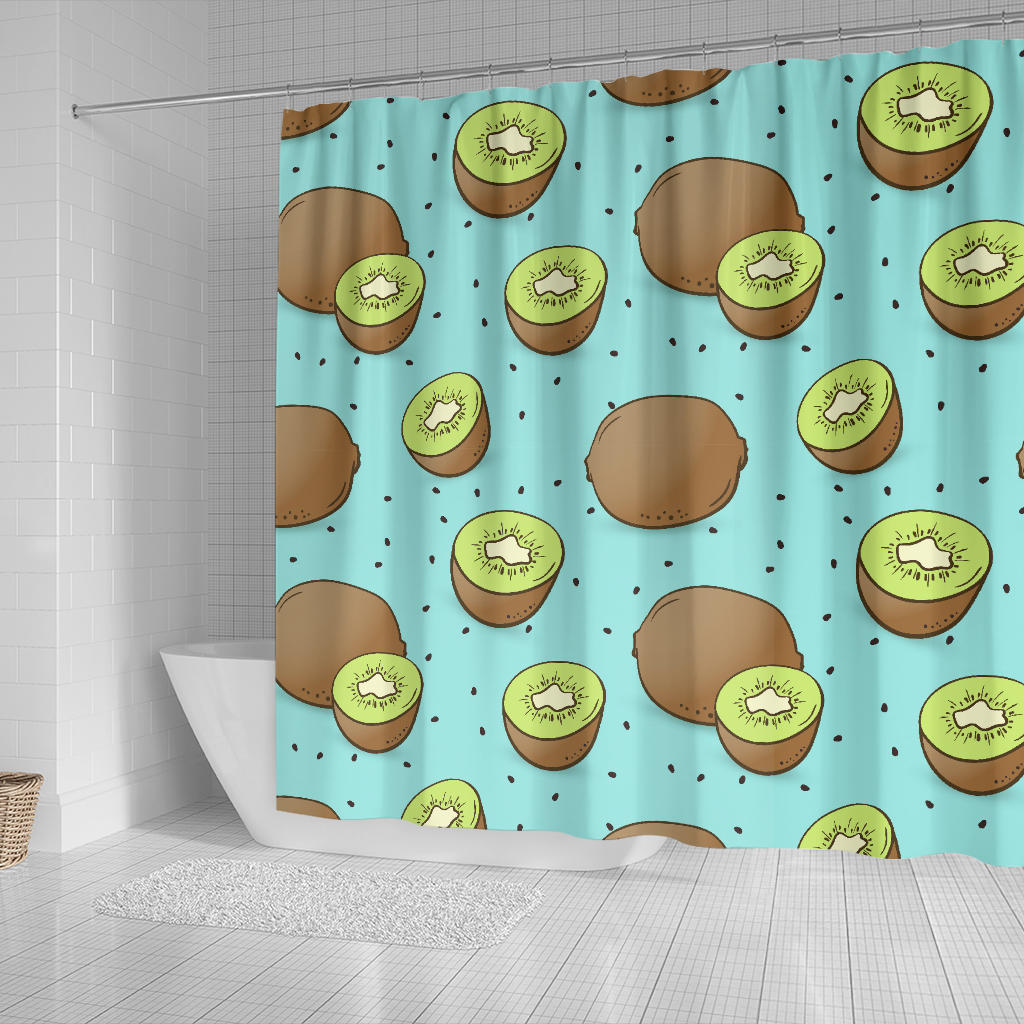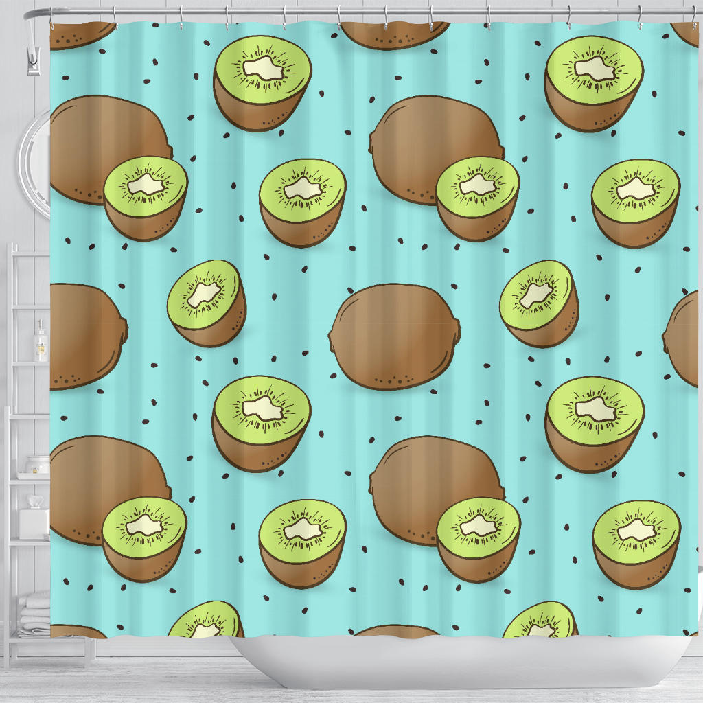Kiwi blue background Shower Curtain is a uniqued design and limited item. It made to order, hand printed, and sewn with love in our factory.