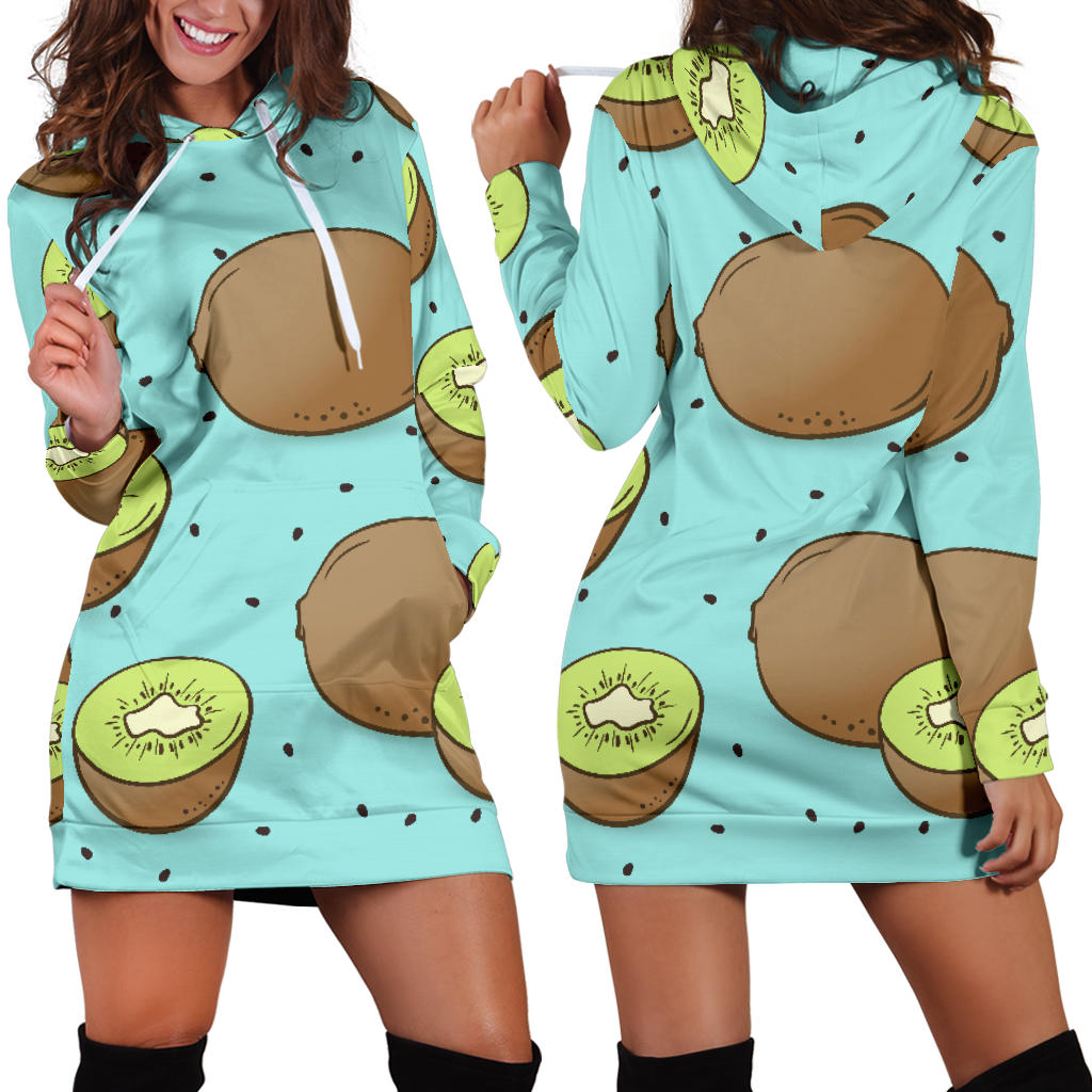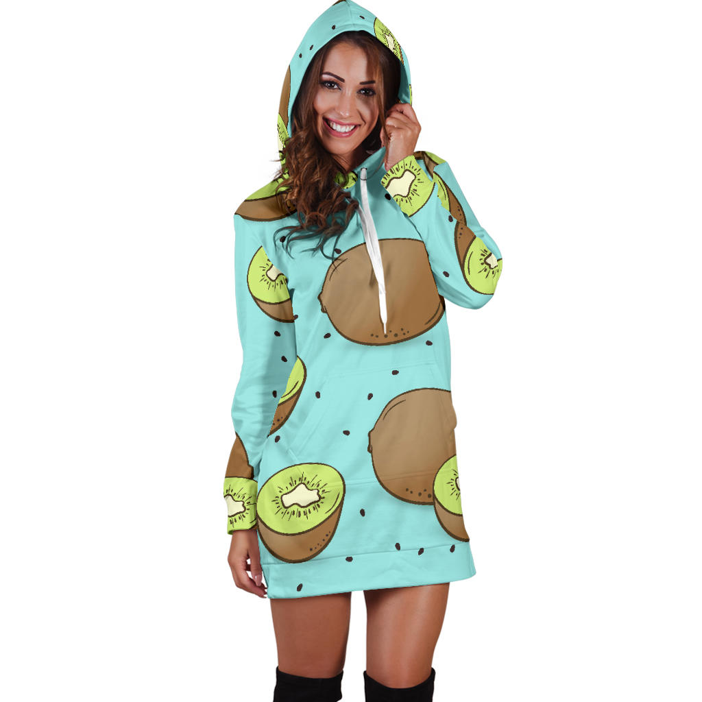 Kiwi blue background Women's Hoodie Dress is a uniqued design and limited item. It made to order, hand printed, and sewn with love in our factory.