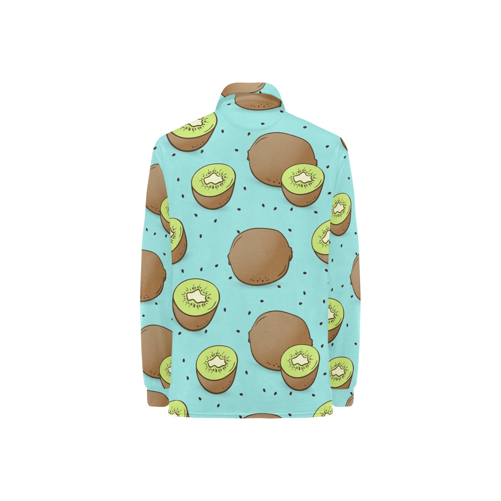 Kiwi blue background Women's Long Sleeve Polo Shirt