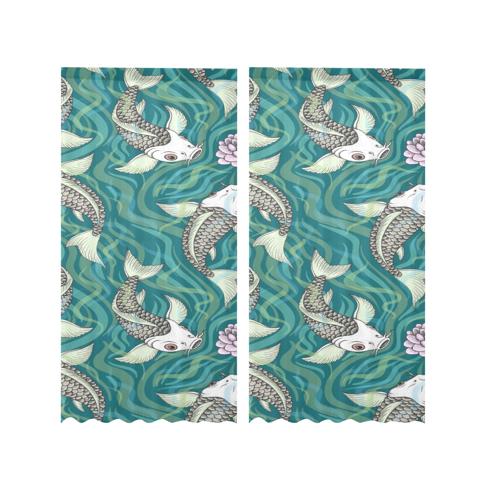 Koi Fish Carp Fish lotus pattern Gauze Curtain