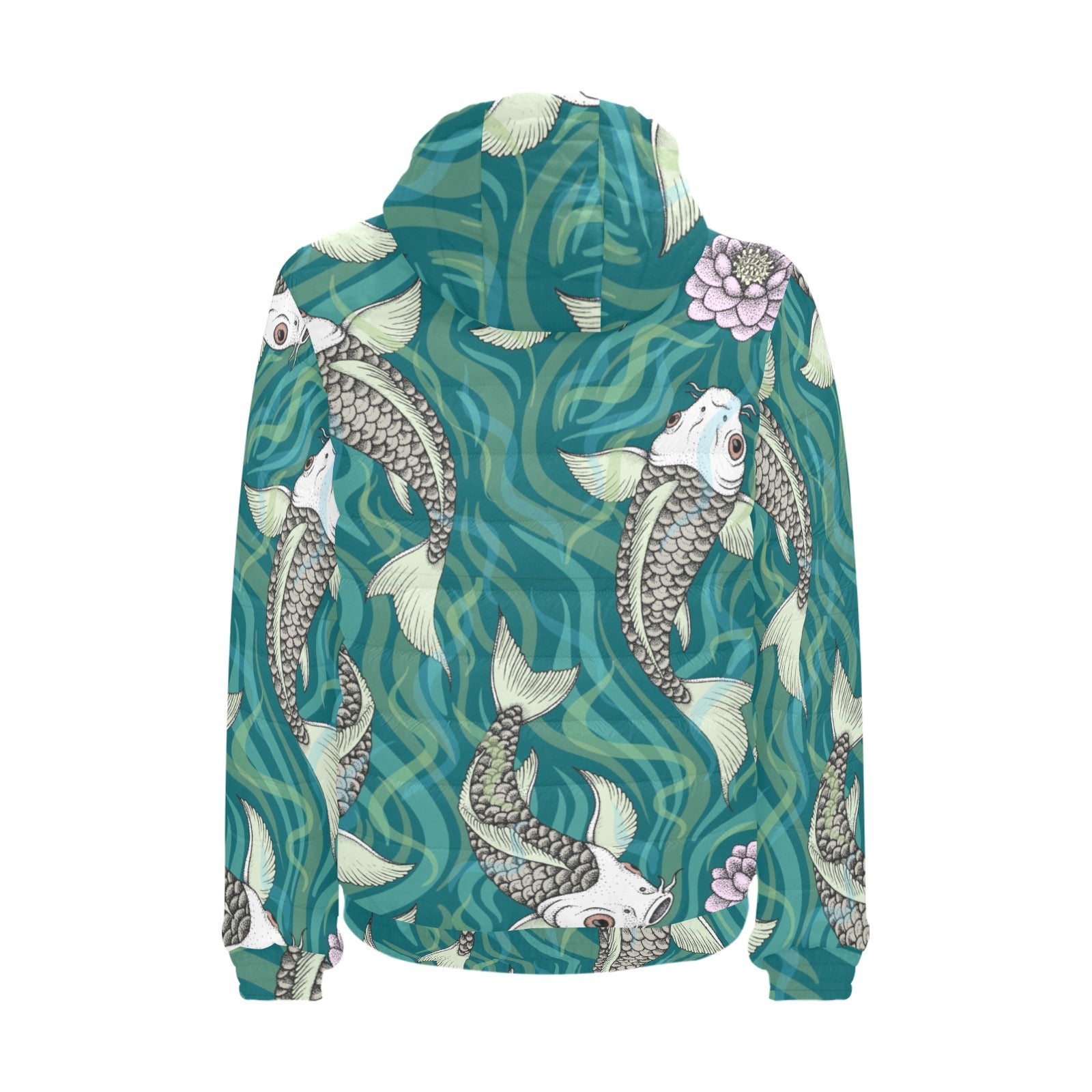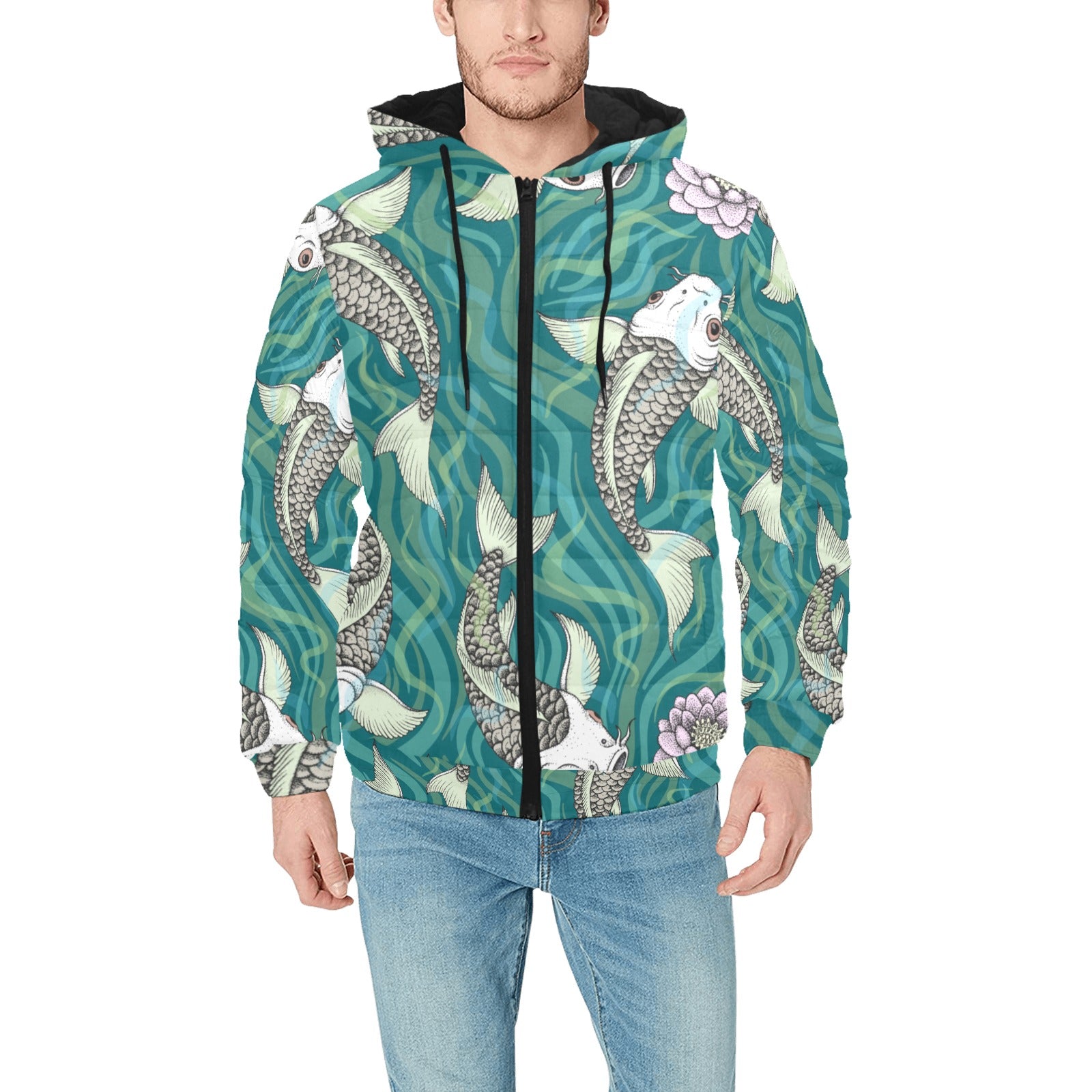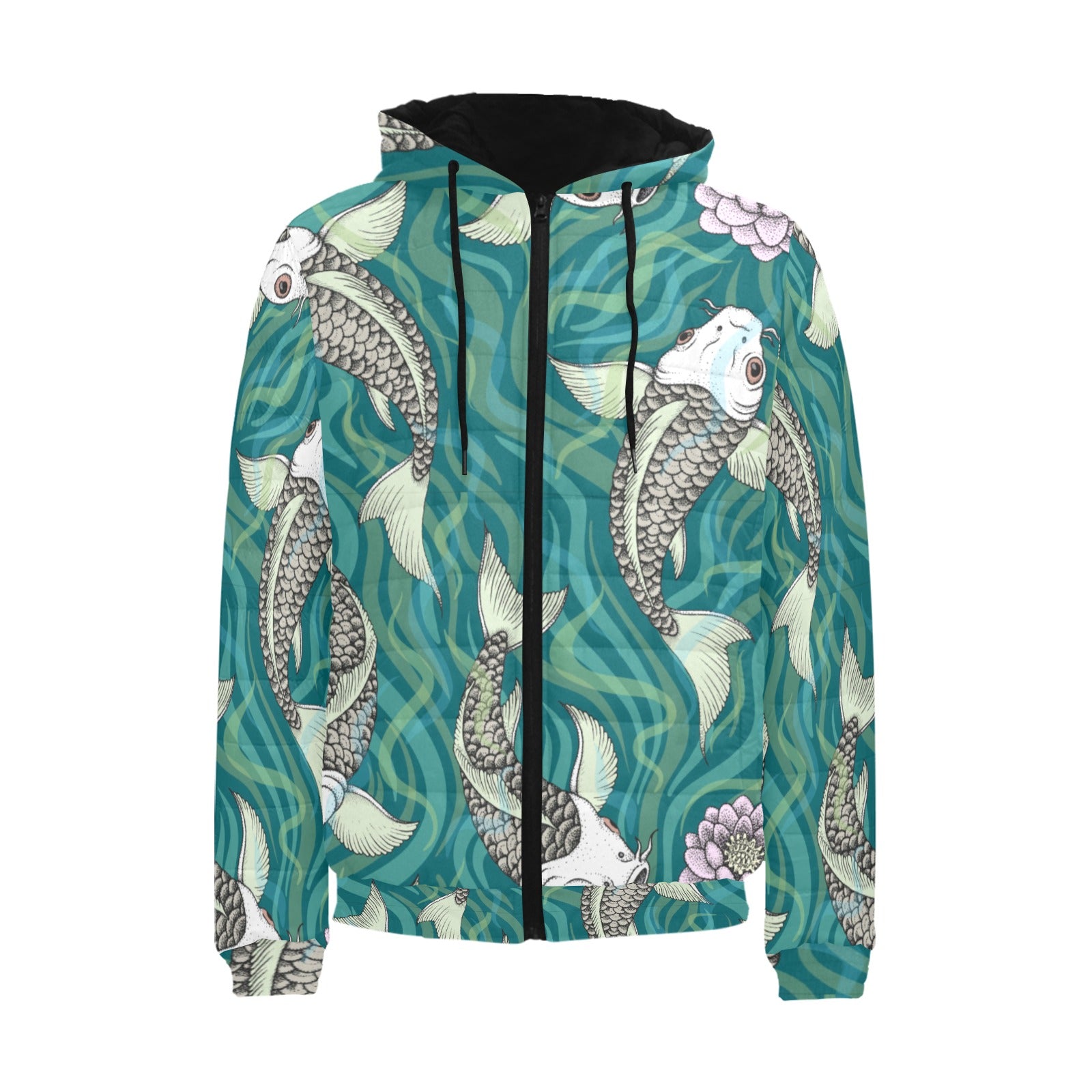 Koi Fish Carp Fish lotus pattern Men's Padded Hooded Jacket
