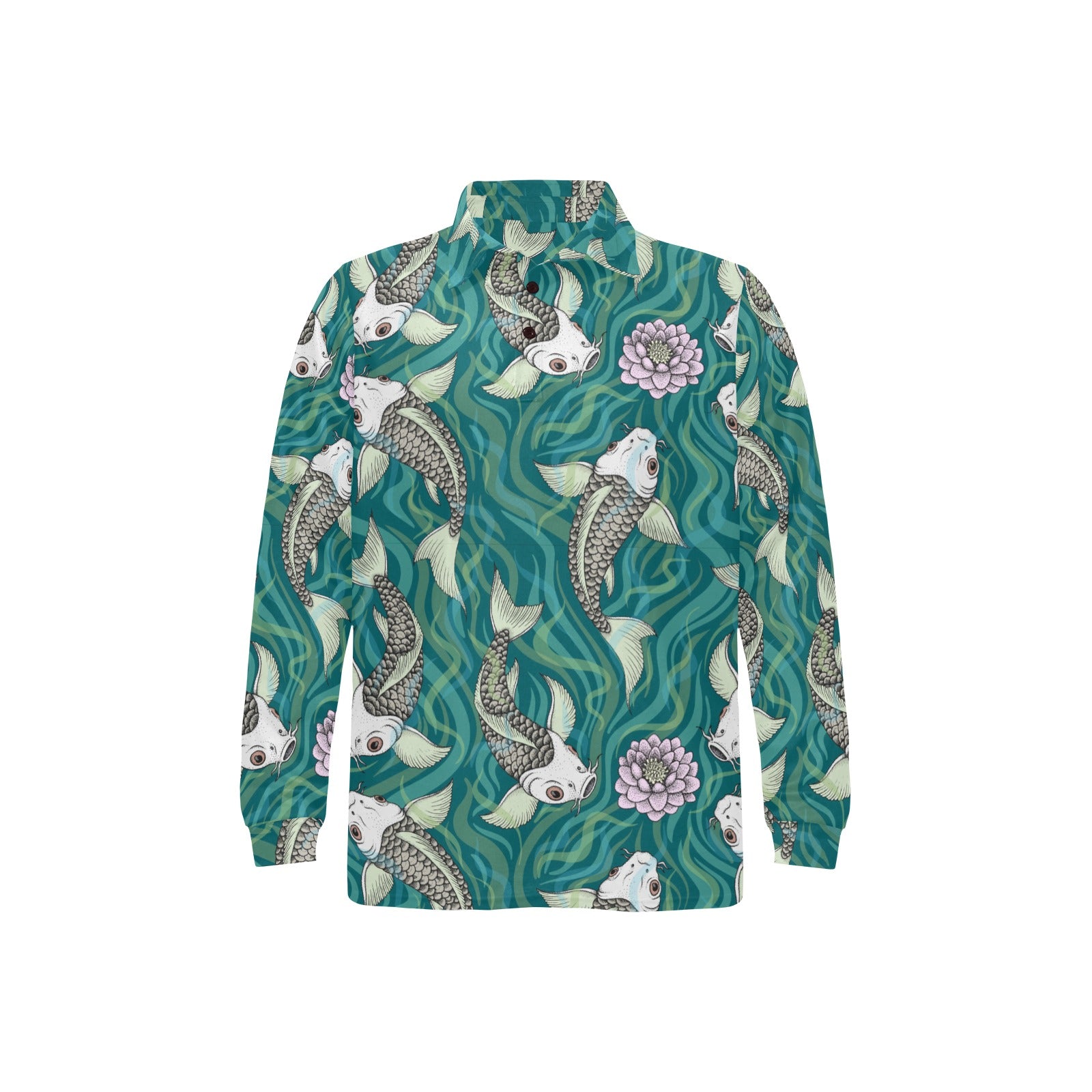 Koi Fish Carp Fish lotus pattern Men's Long Sleeve Polo Shirt