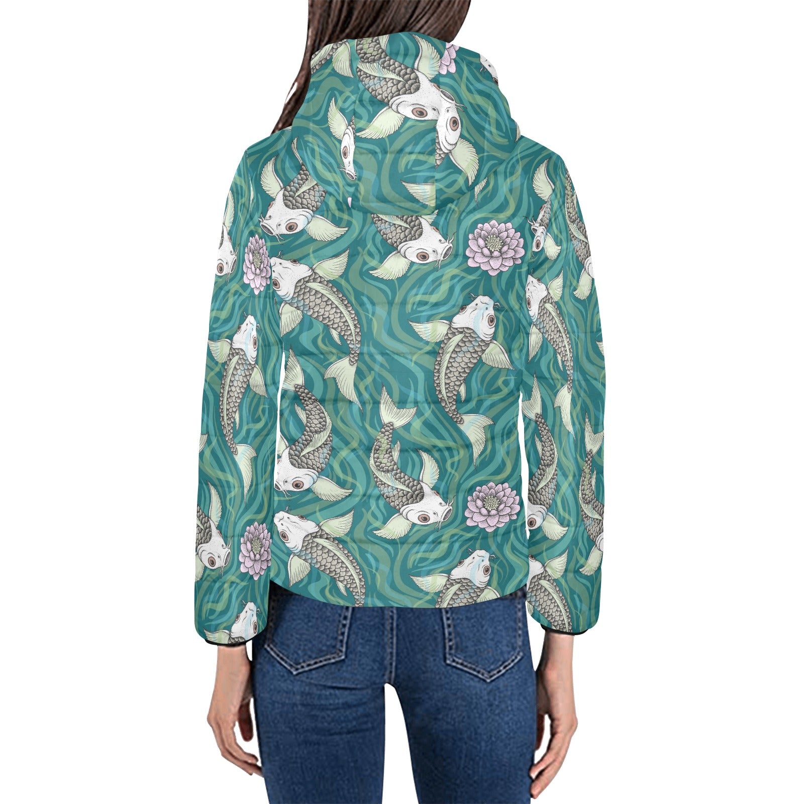 Koi Fish Carp Fish lotus pattern Women's Padded Hooded Jacket