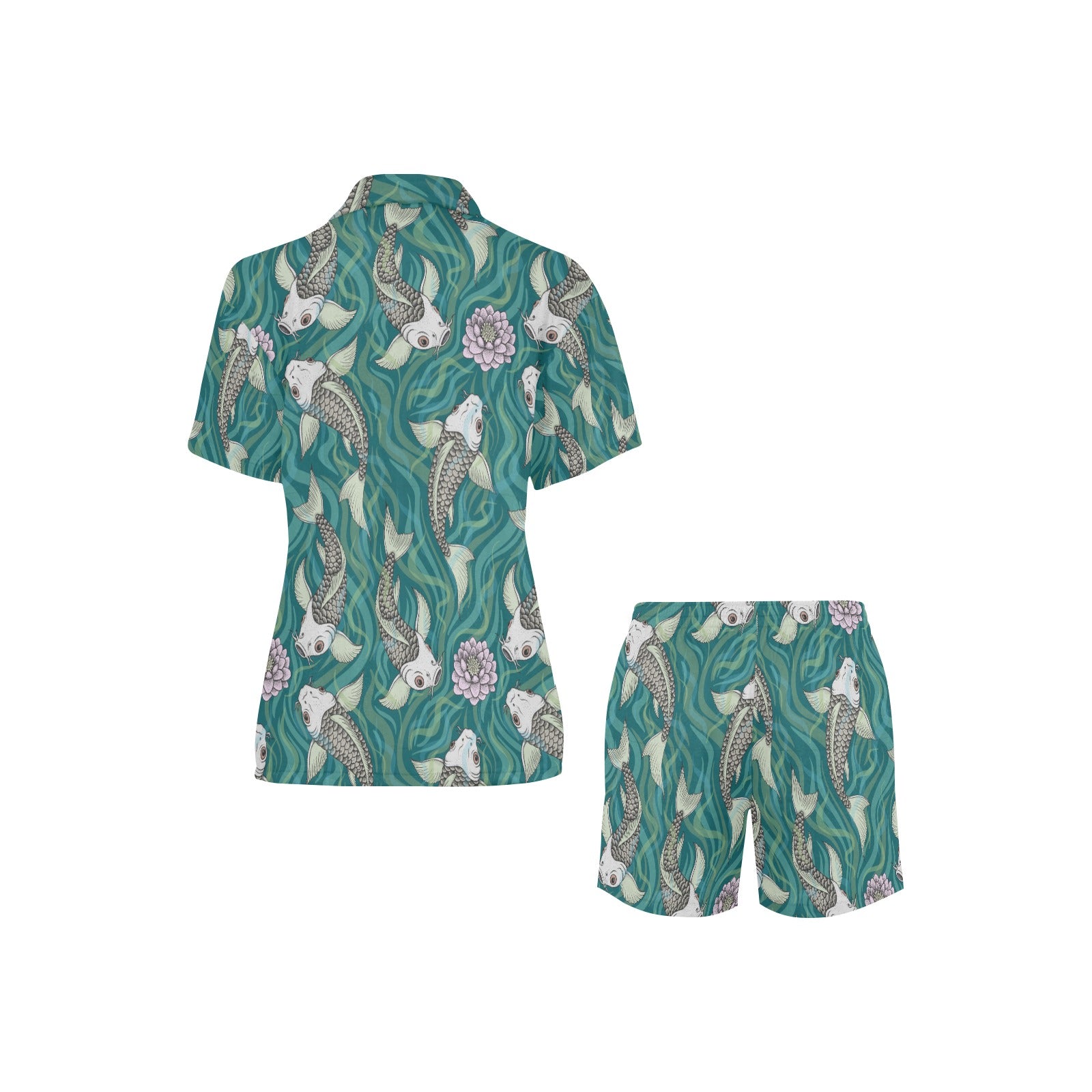 Koi Fish Carp Fish lotus pattern Women's V-Neck Short Pajama Set