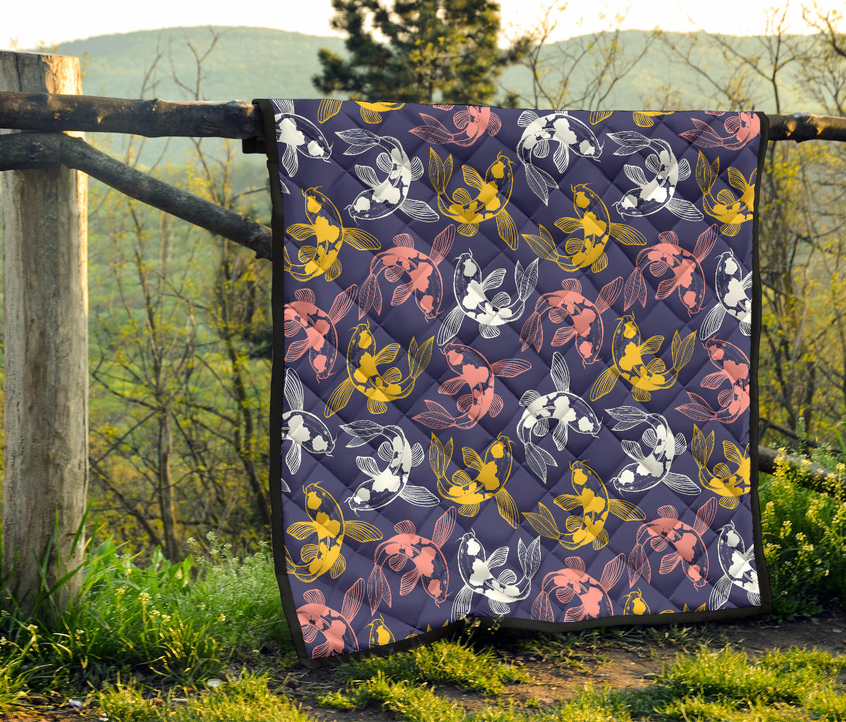 Koi Fish Carp Fish Pattern Premium Quilt is a uniqued design and limited item. It made to order, hand printed, and sewn with love in our factory.