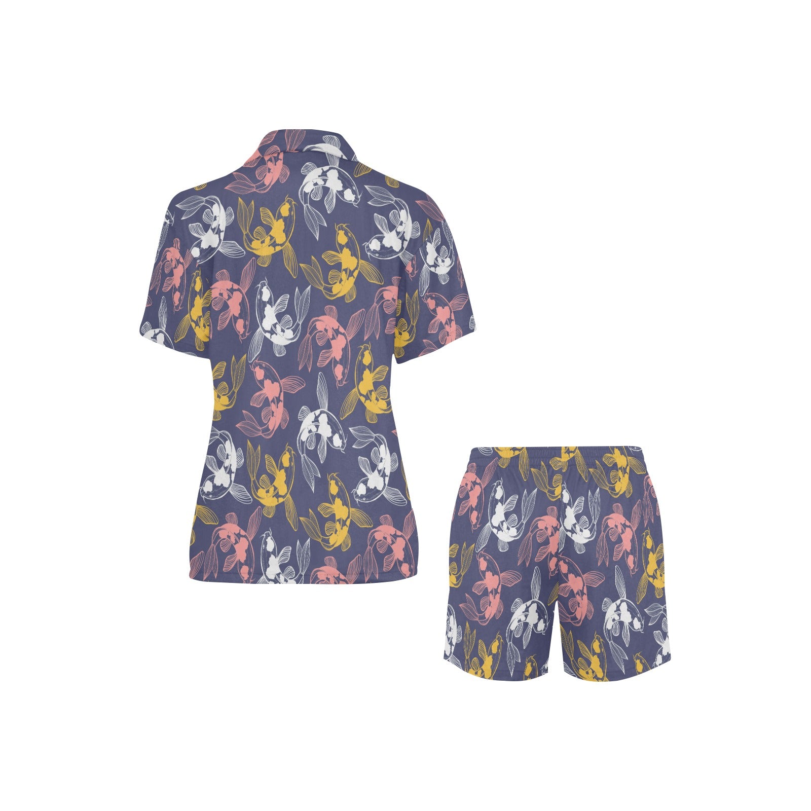 Koi Fish Carp Fish pattern Women's V-Neck Short Pajama Set
